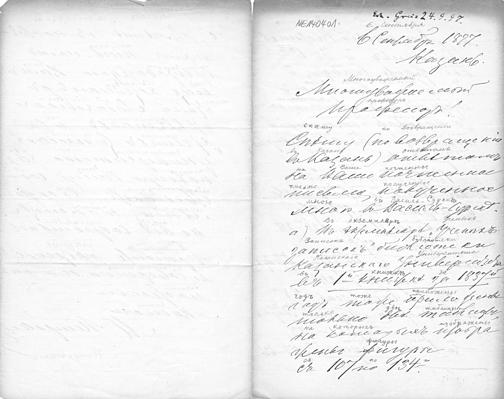 Brief von M... Petrovekago(?) an Friedrich Engel vom September 1897