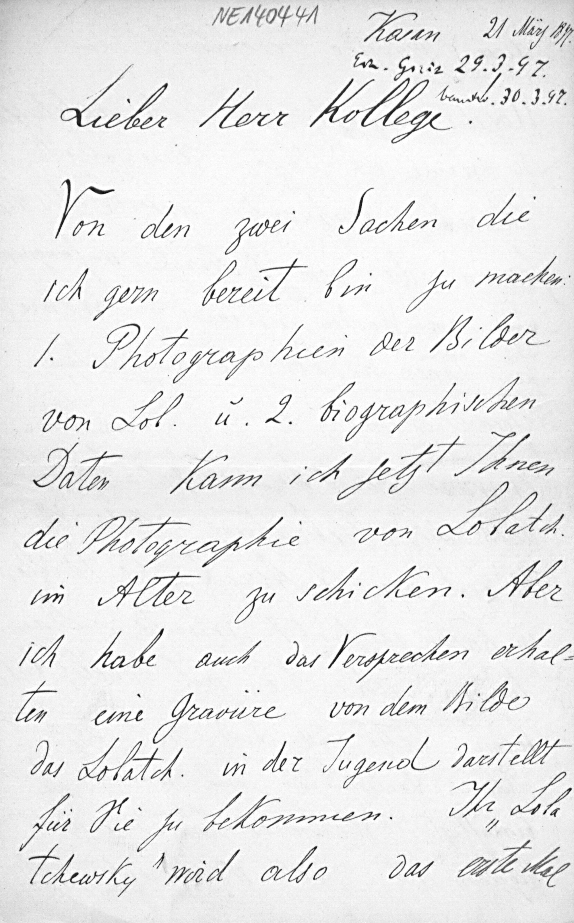 Brief von Alexander Wassiliew an Friedrich Engel vom 21.3.1897