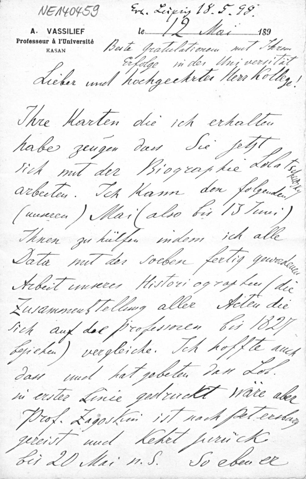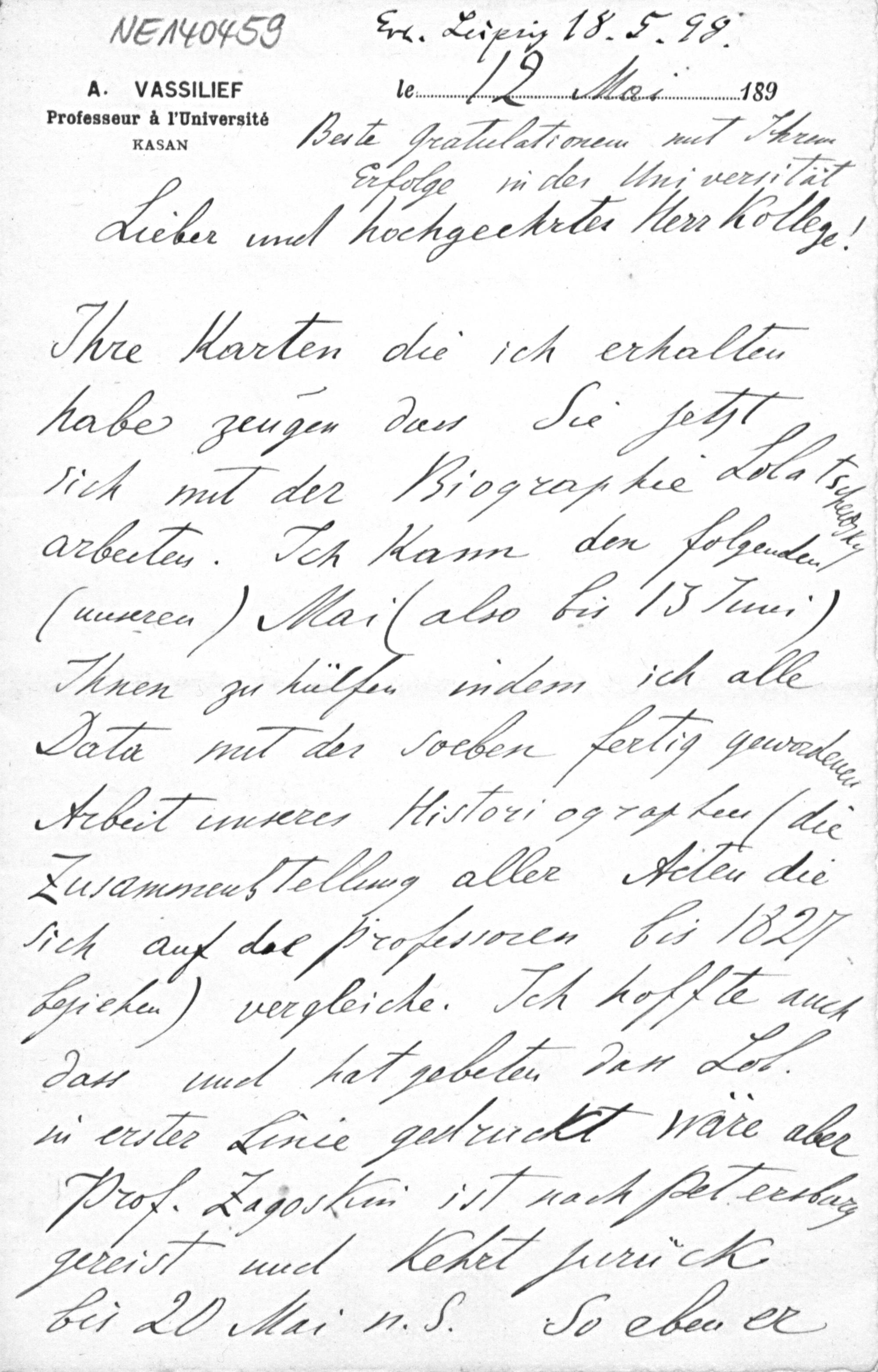 Brief von Alexander Wassiliew an Friedrich Engel vom 12.5.1898