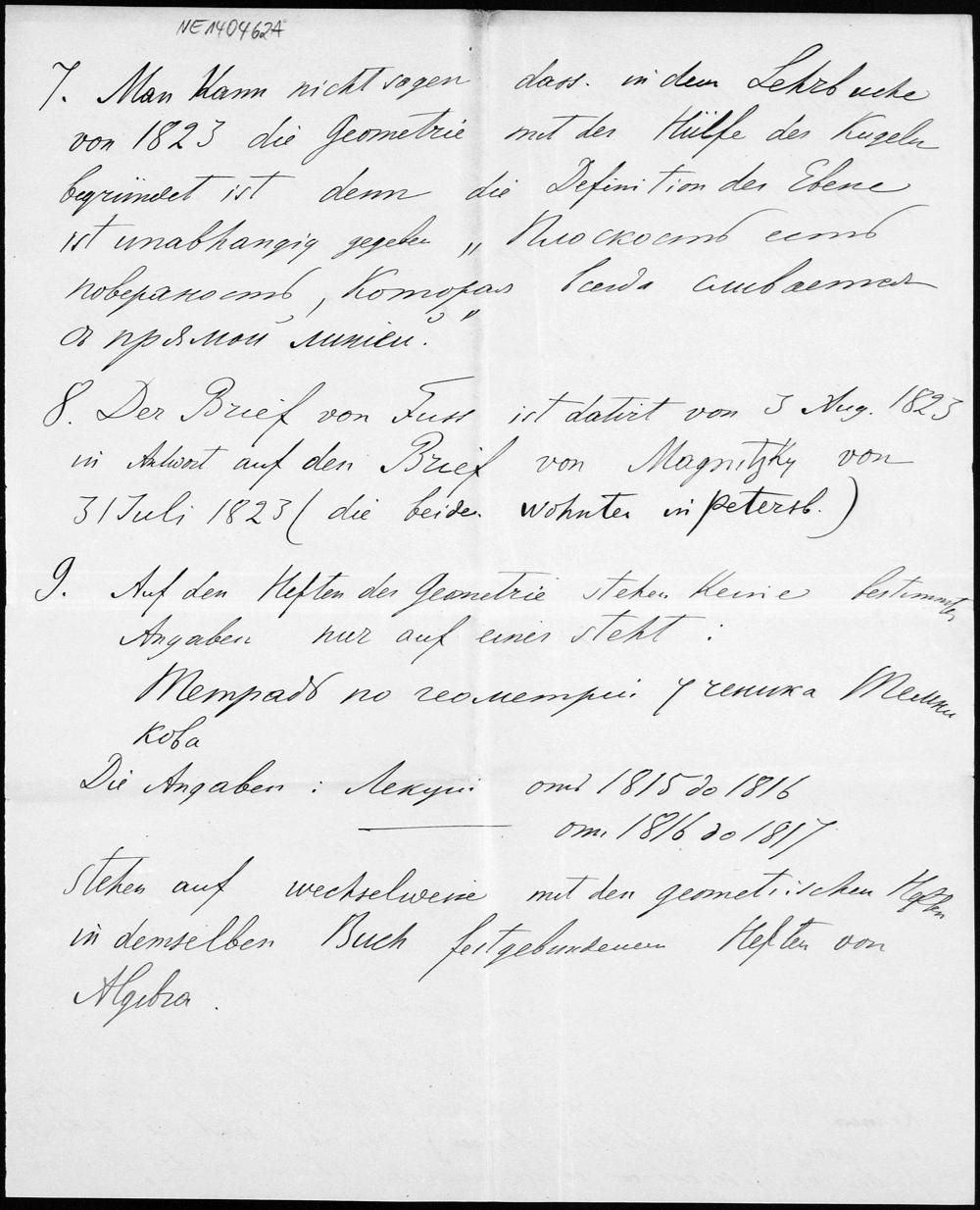 Brief von Alexander Wassiliew an Friedrich Engel vom 4.6.1898