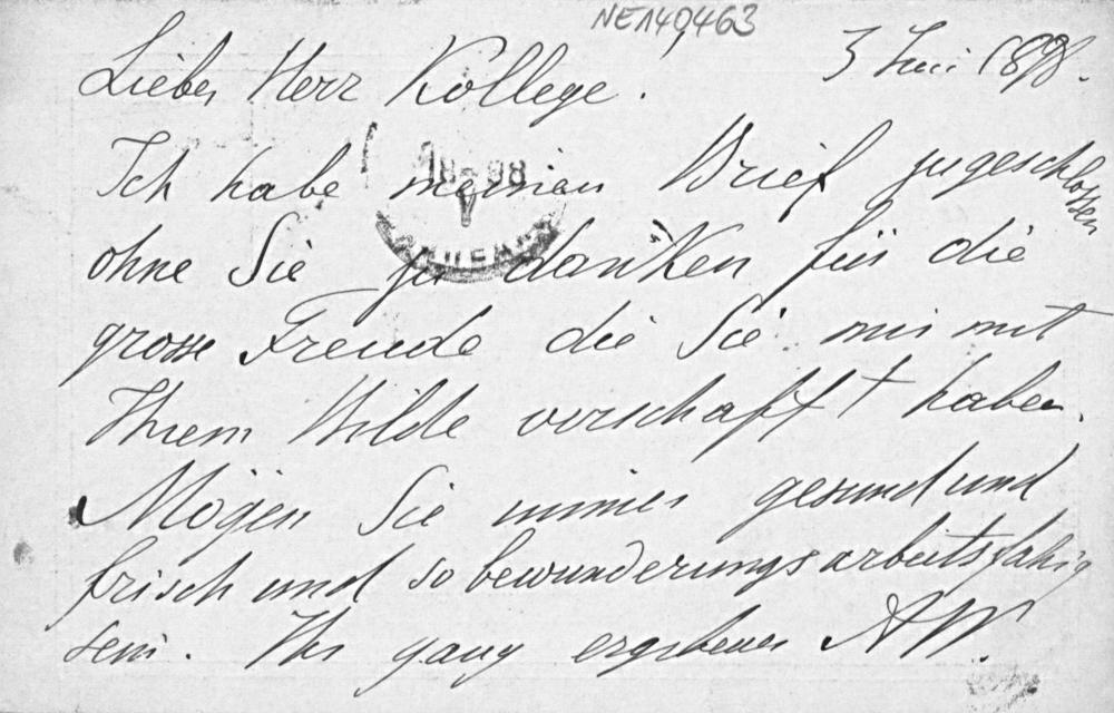 Postkarte von Alexander Wassiliew an Friedrich Engel vom 3.6.1898