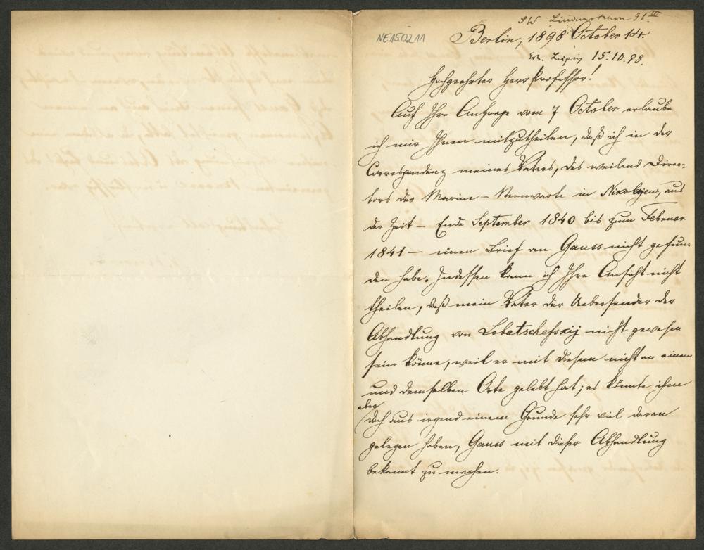 Brief von Victor Knorre an Friedrich Engel vom 14.10.1898