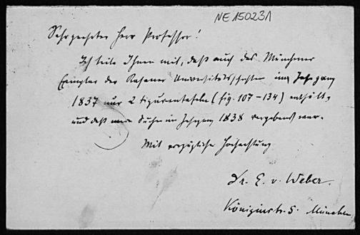 Postkarte von Eduard von Weber an Friedrich Engel vom 15.1.1???