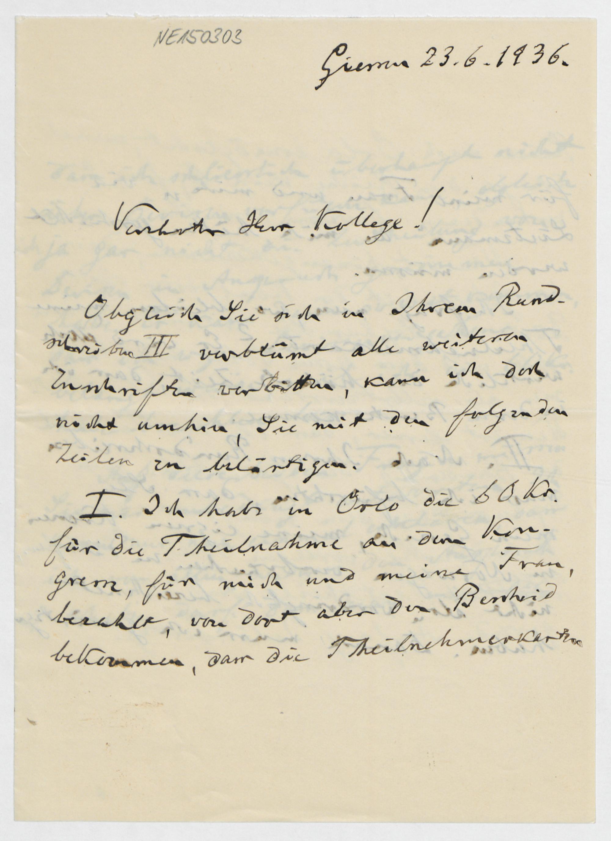 Entwurf eines Briefes von Friedrich Engel an Walter Lietzmann (?) vom 23.6.1936