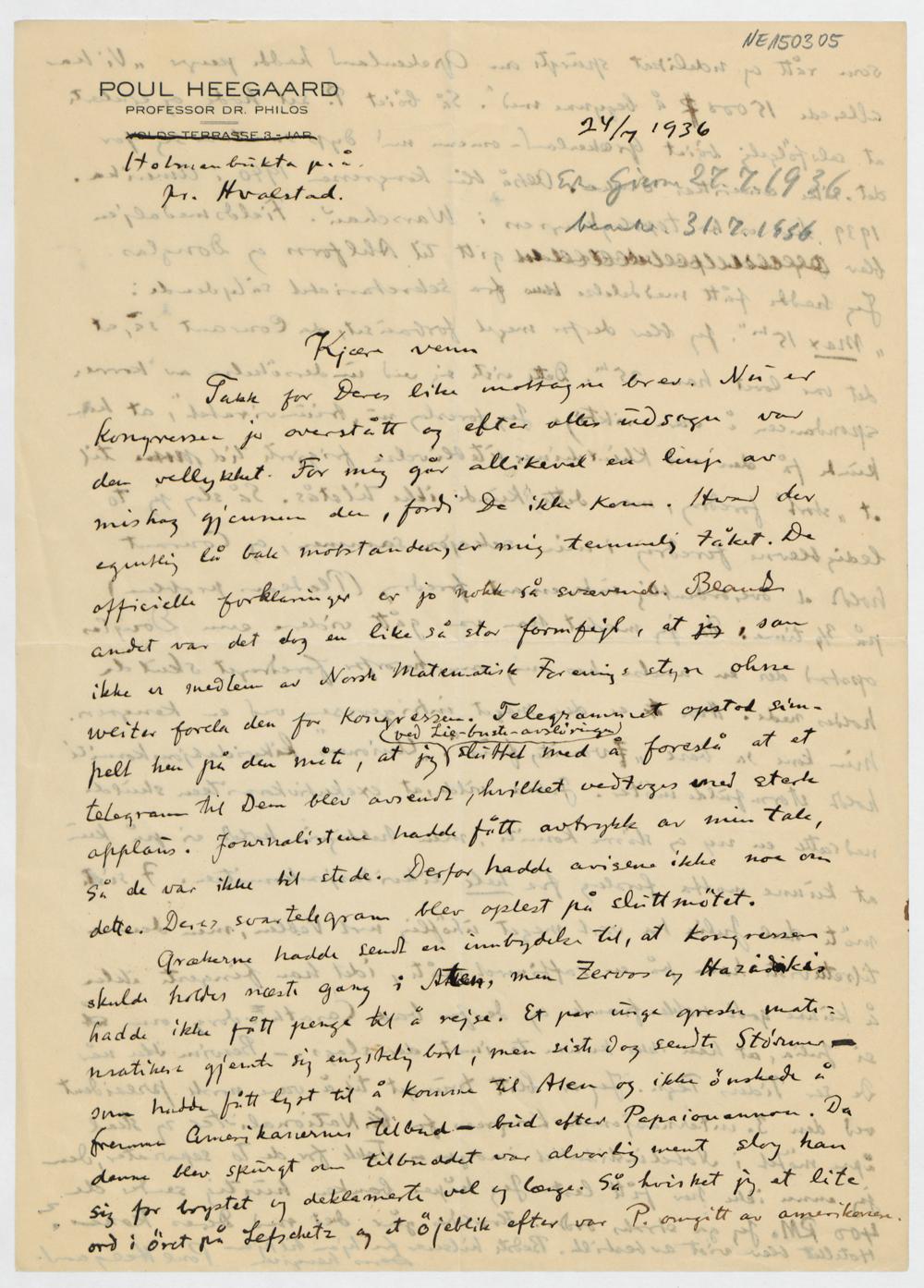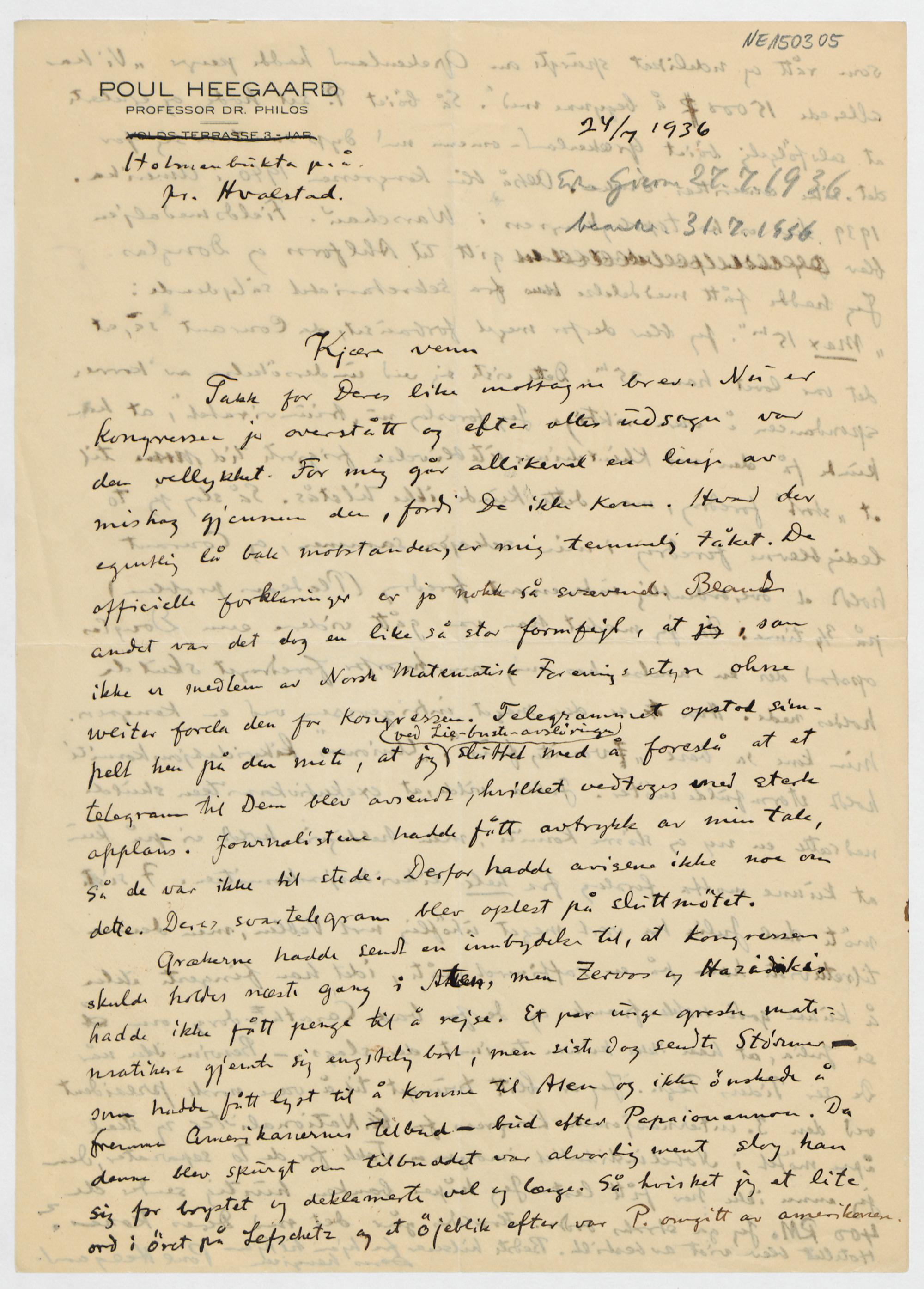 Brief von Poul Heegaard an Friedrich Engel vom 24.7.1936