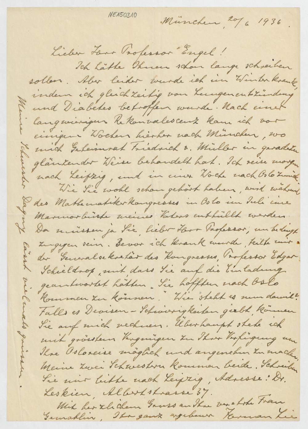 Brief von Herman Lie Friedrich Engel vom 20.6.1936