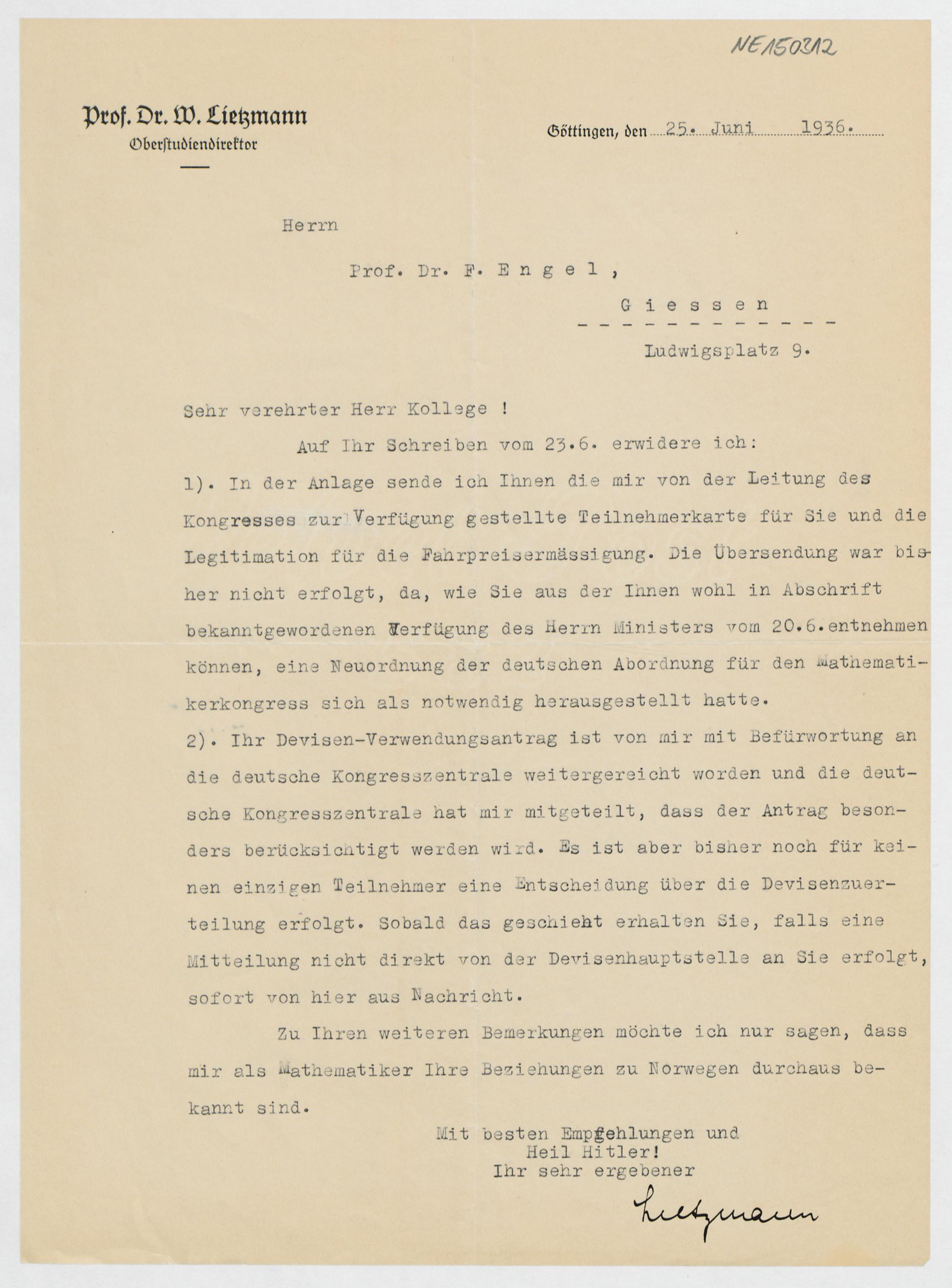 Brief von Walter Lietzmann an Friedrich Engel vom 25.6.1936