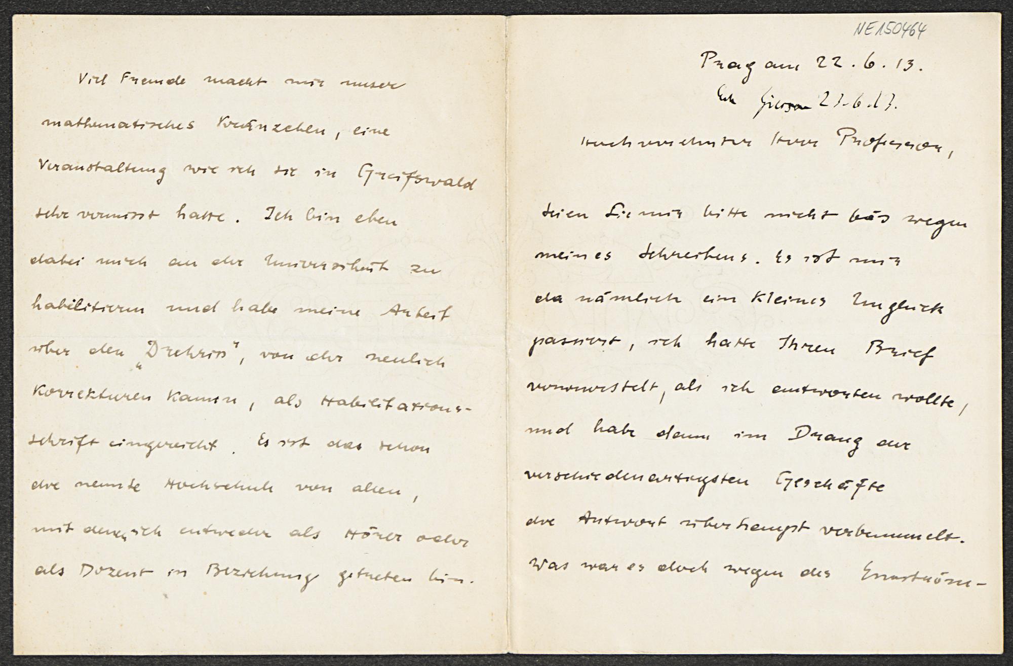 Brief von Wilhelm Blaschke an Friedrich Engel vom 22.6.1913
