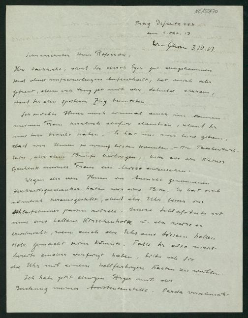 Brief von Wilhelm Blaschke an Friedrich Engel vom 1.10.1913