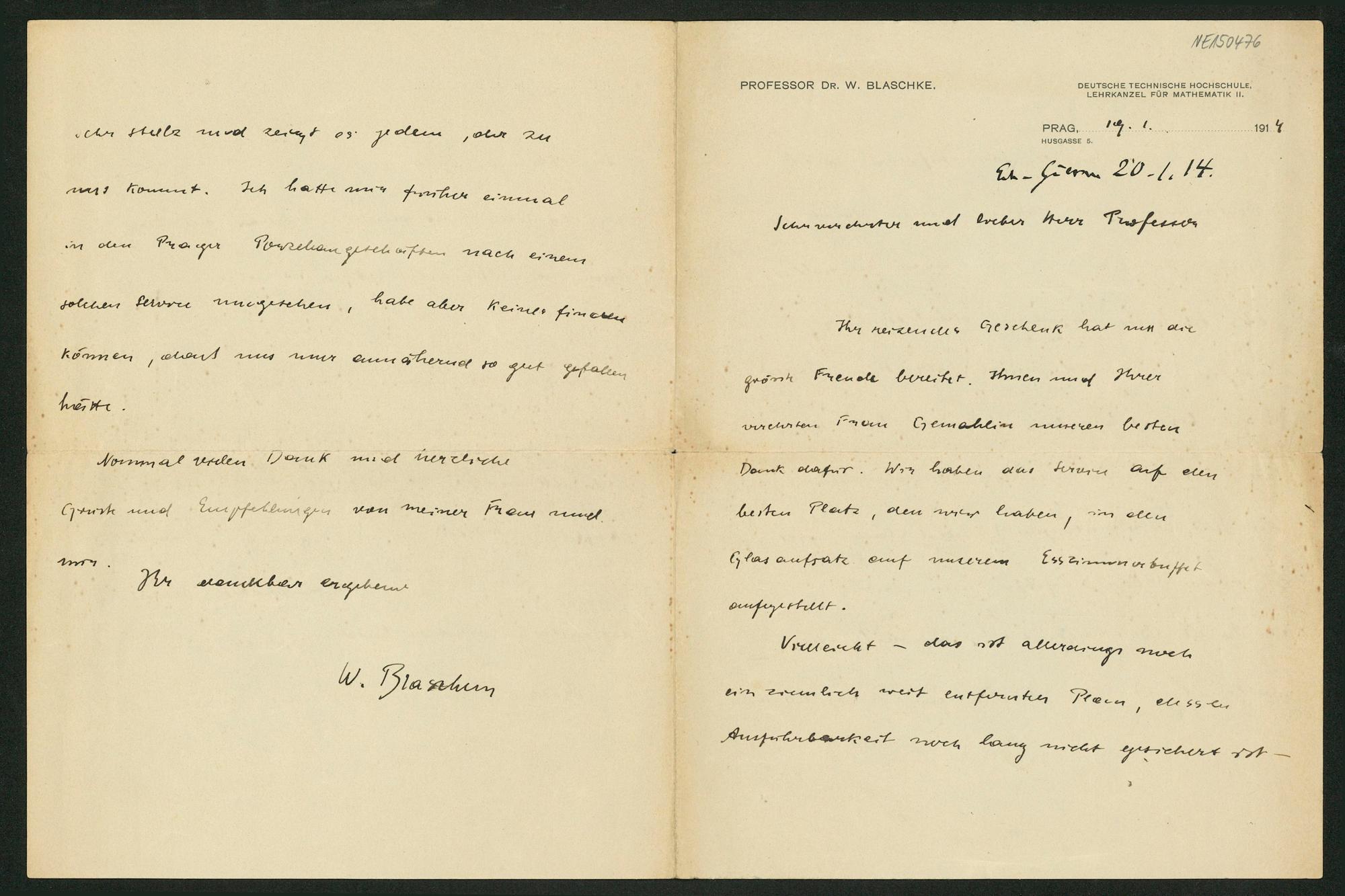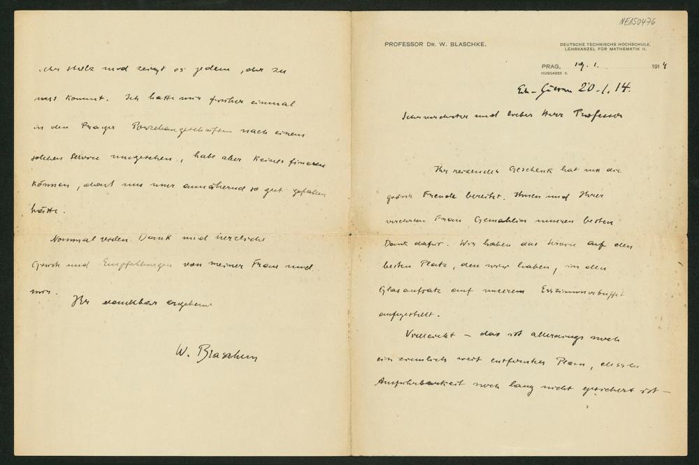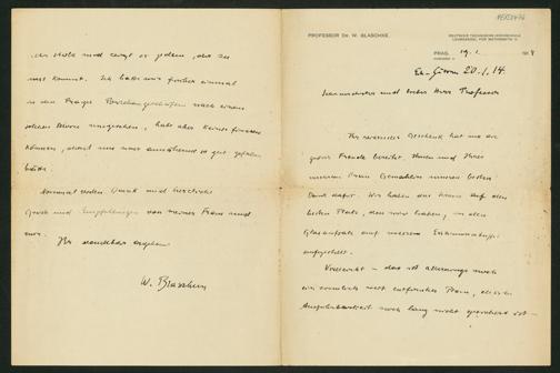 Brief von Wilhelm Blaschke an Friedrich Engel vom 19.1.1914