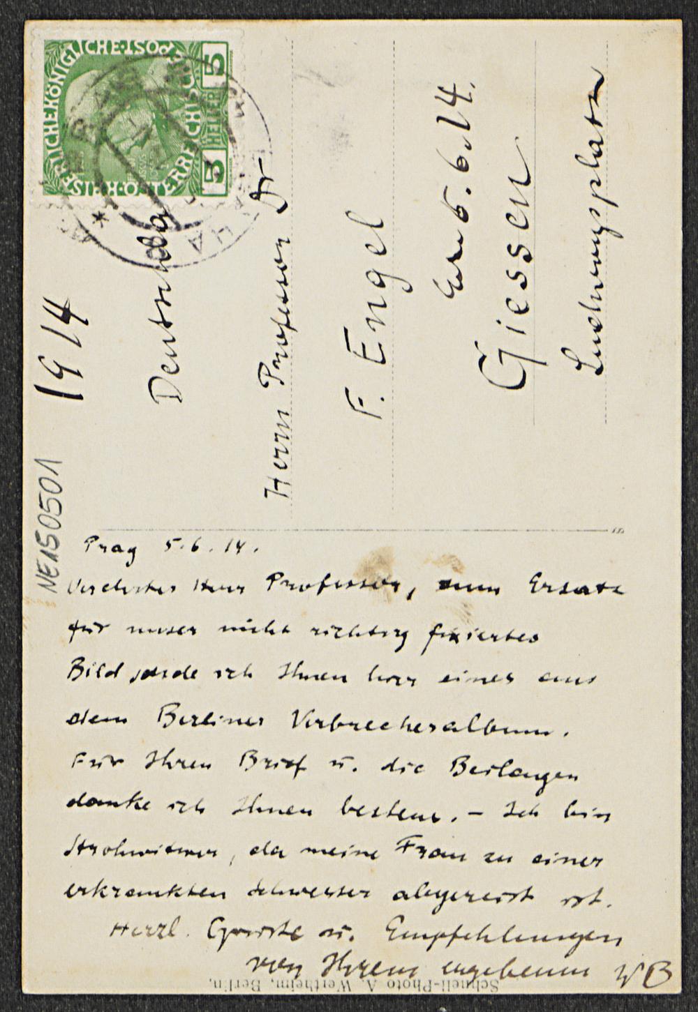 Postkarte (Foto) von Wilhelm Blaschke an Friedrich Engel vom 5.6.1914