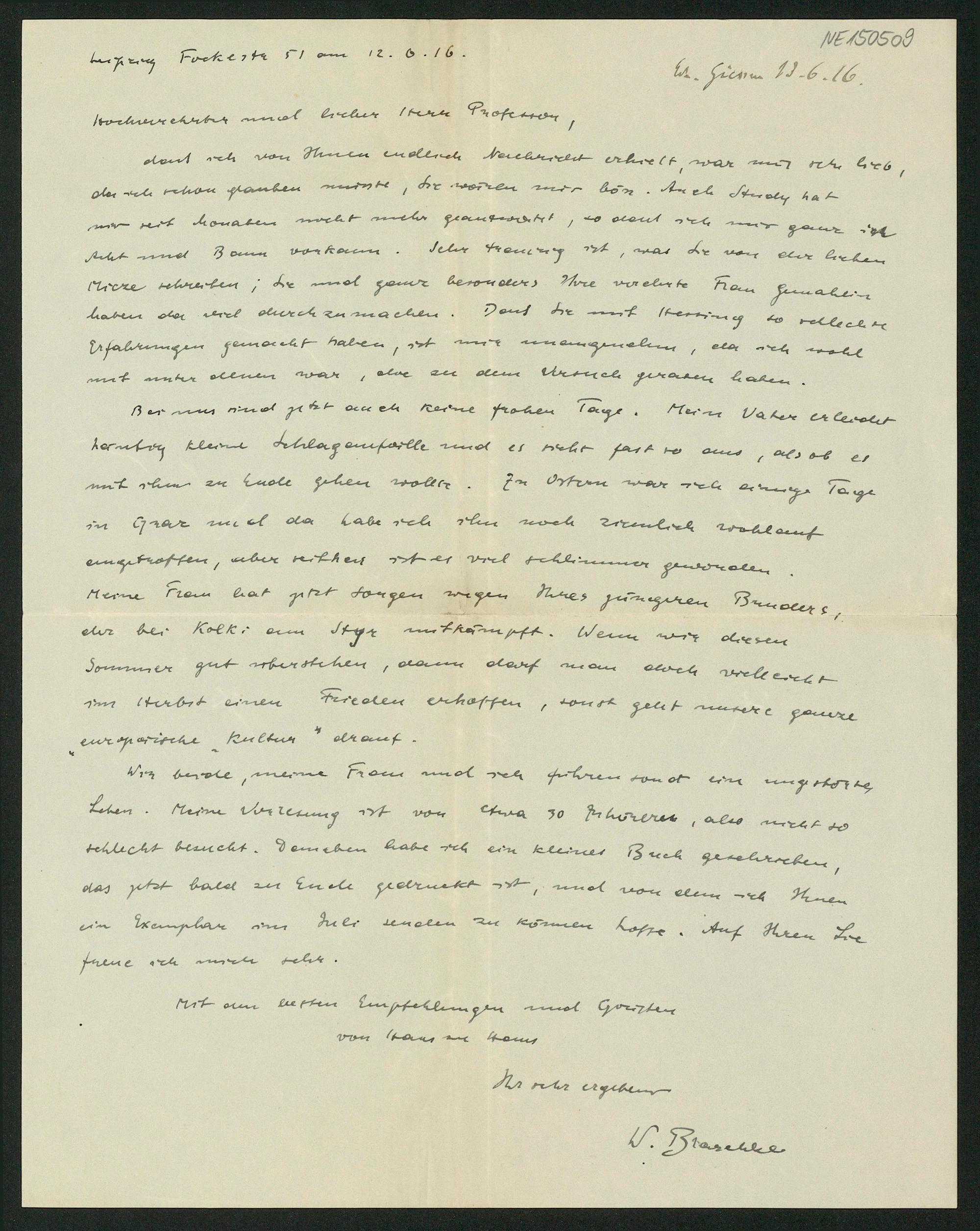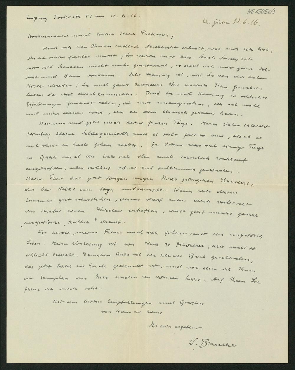 Brief von Wilhelm Blaschke an Friedrich Engel vom 12.6.1916