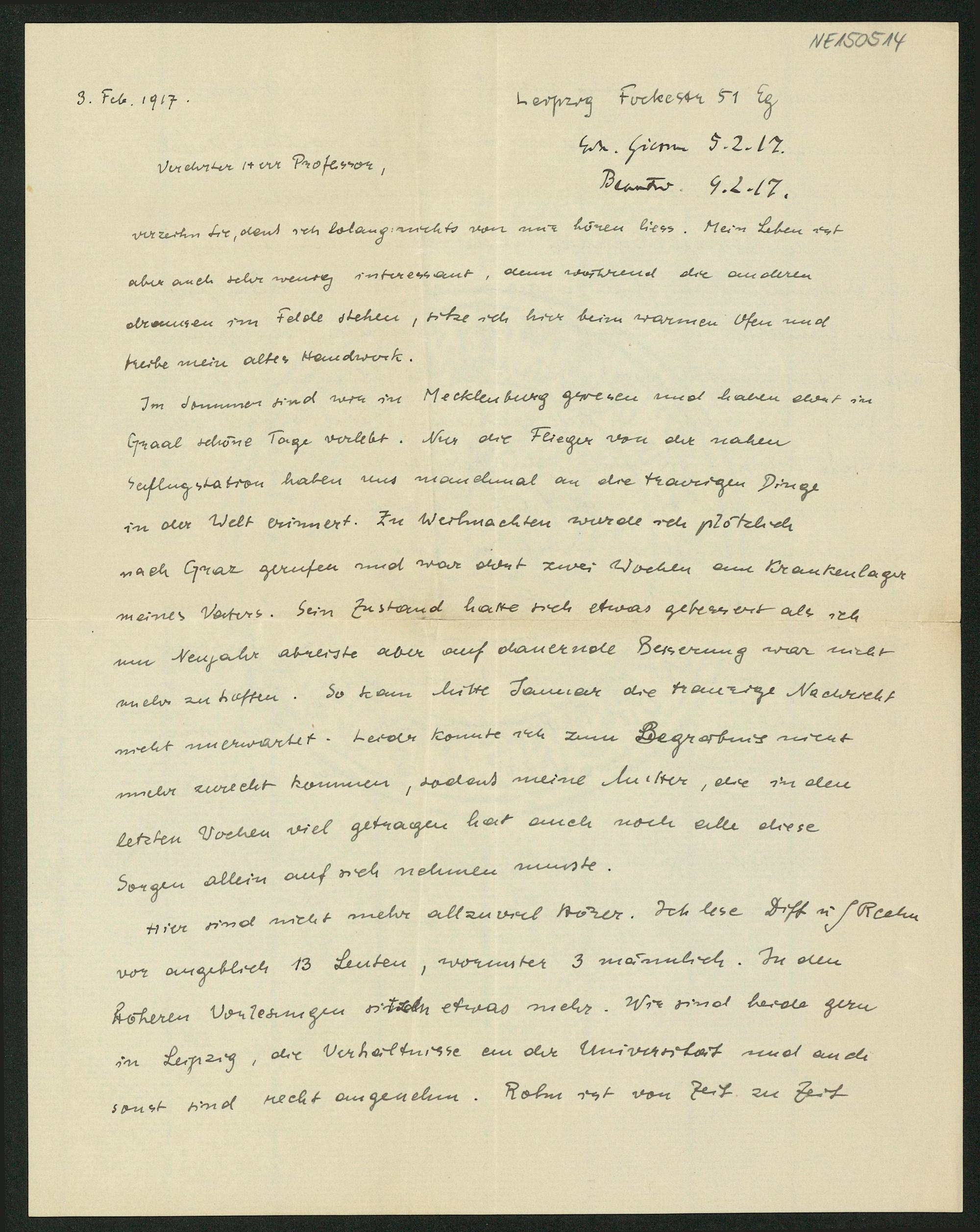 Brief von Wilhelm Blaschke an Friedrich Engel vom 3.2.1917