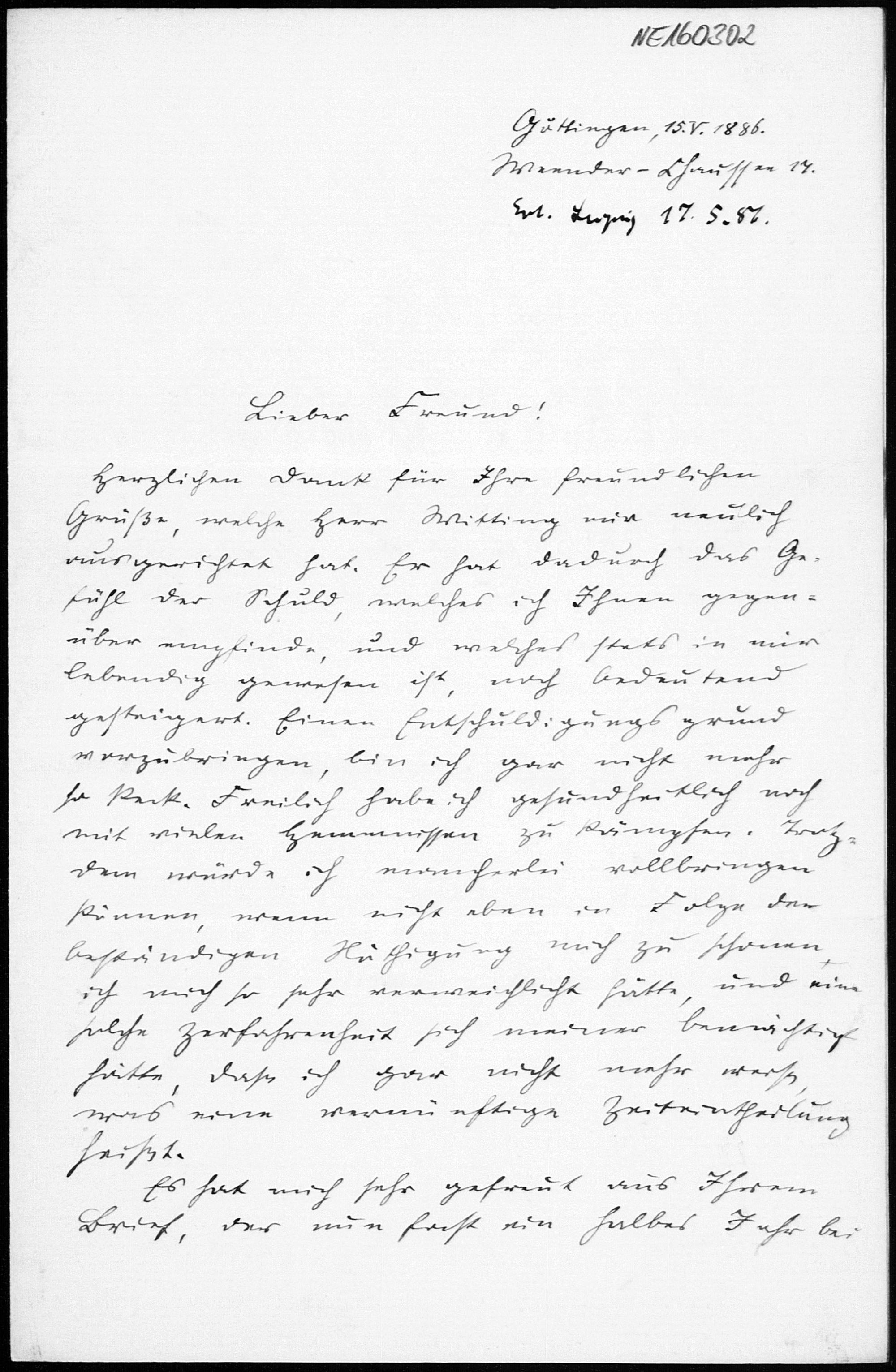 Brief von Otto Hölder an Friedrich Engel vom 15.5.1886