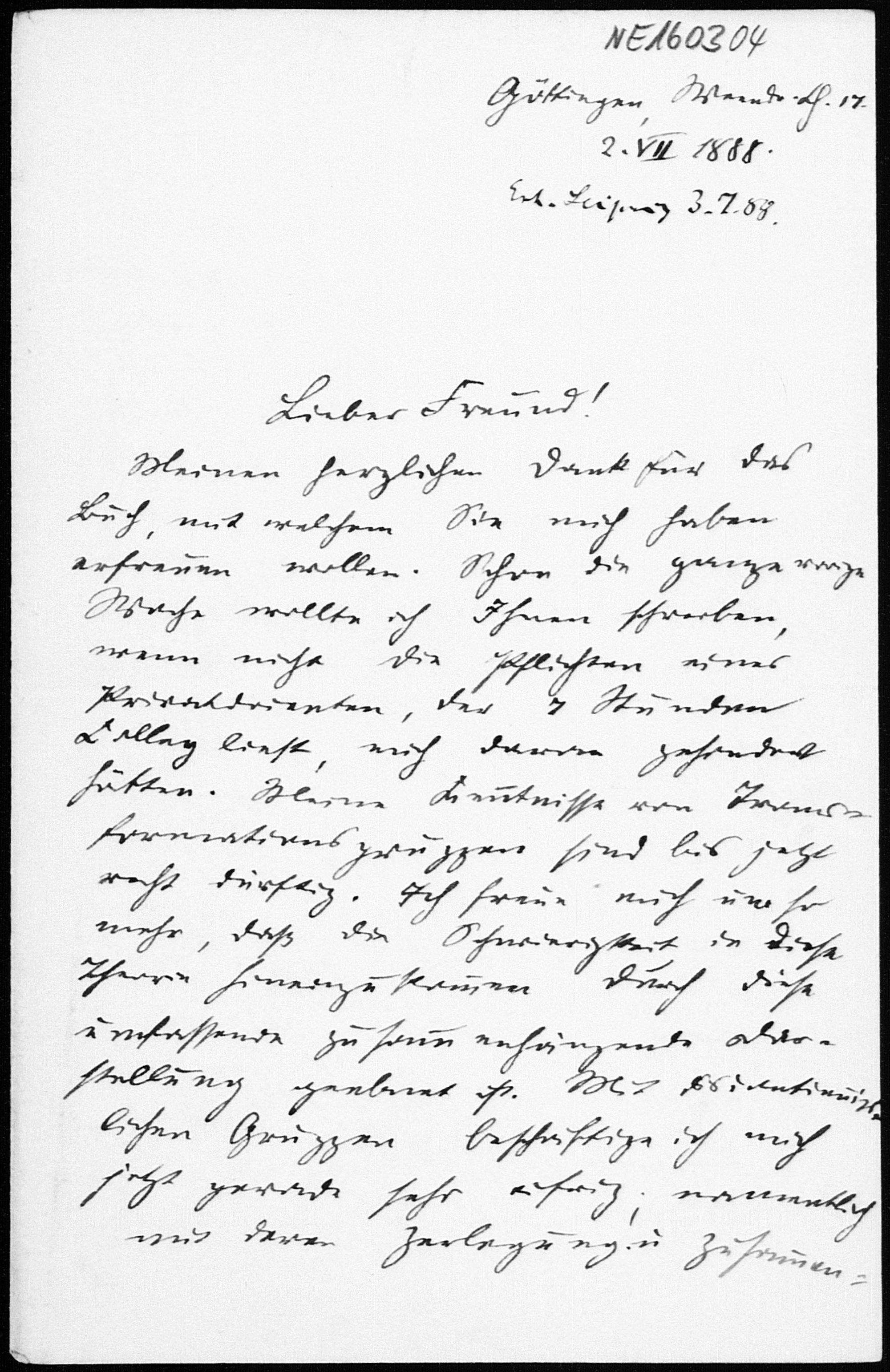 Brief von Otto Hölder an Friedrich Engel vom 2.7.1888