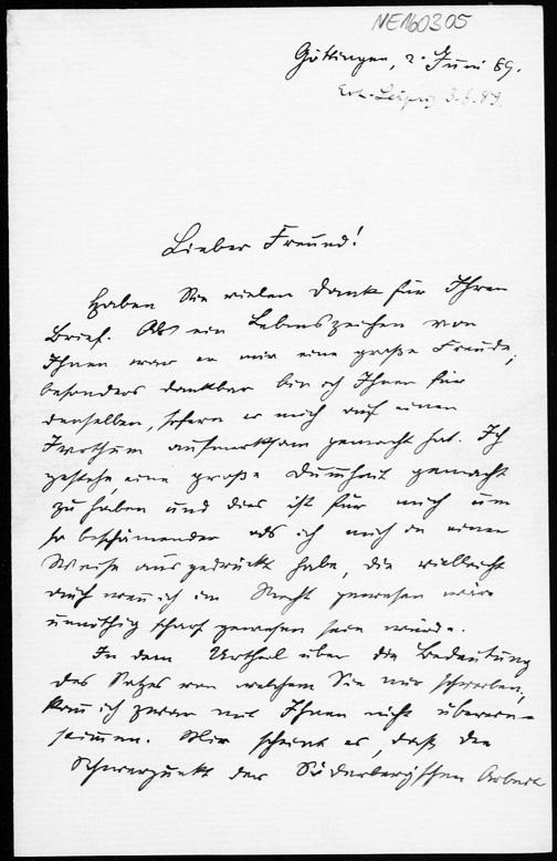 Brief von Otto Hölder an Friedrich Engel vom 2.6.1889