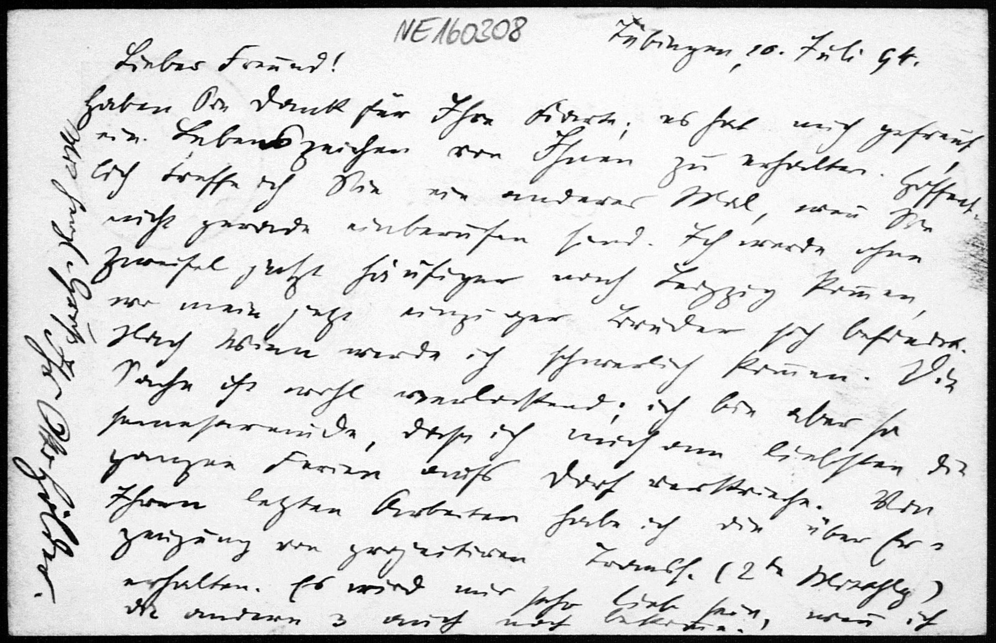 Postkarte von Otto Hölder an Friedrich Engel vom 10.7.1894