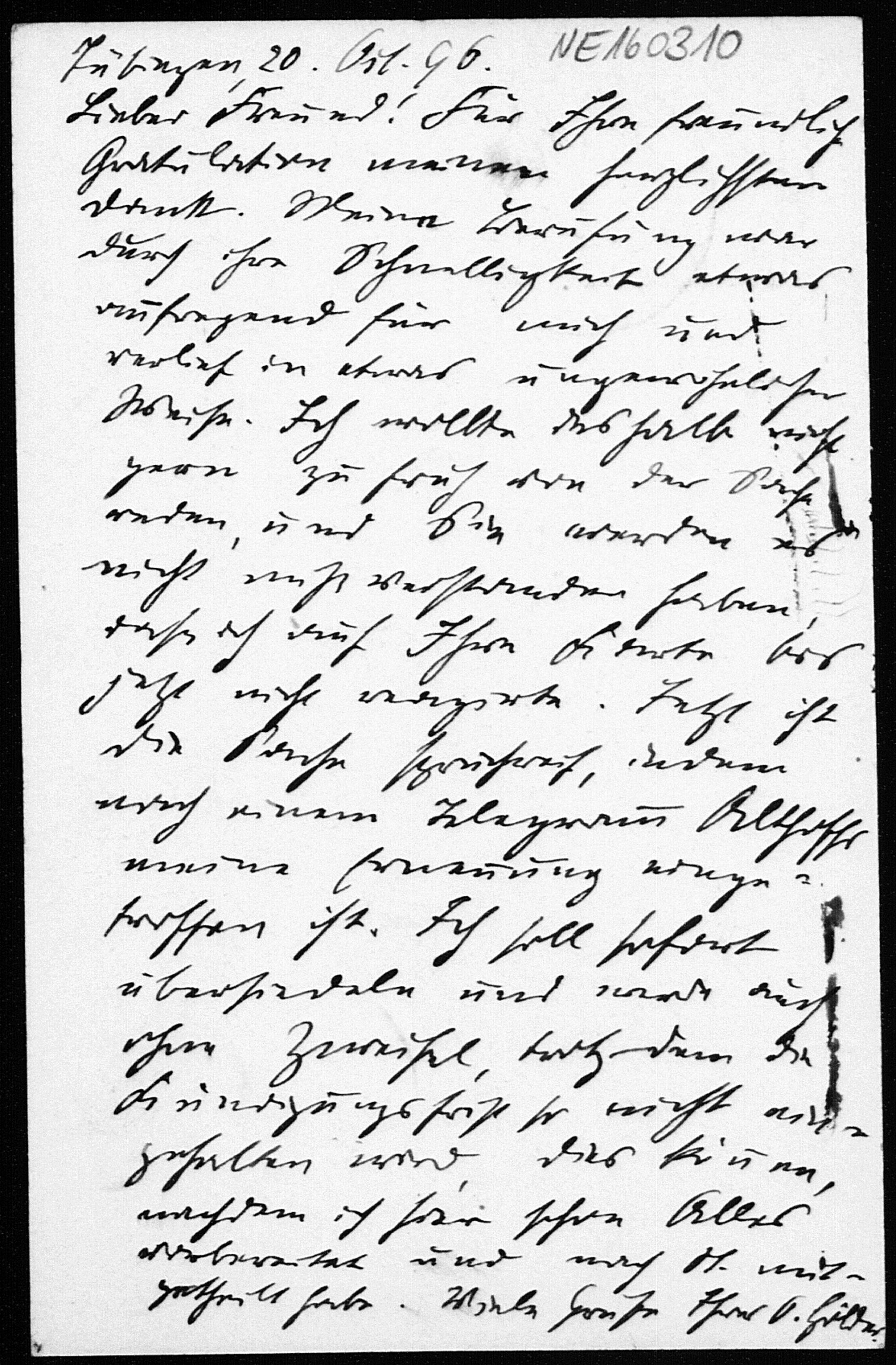 Postkarte von Otto Hölder an Friedrich Engel vom 20.10.1896