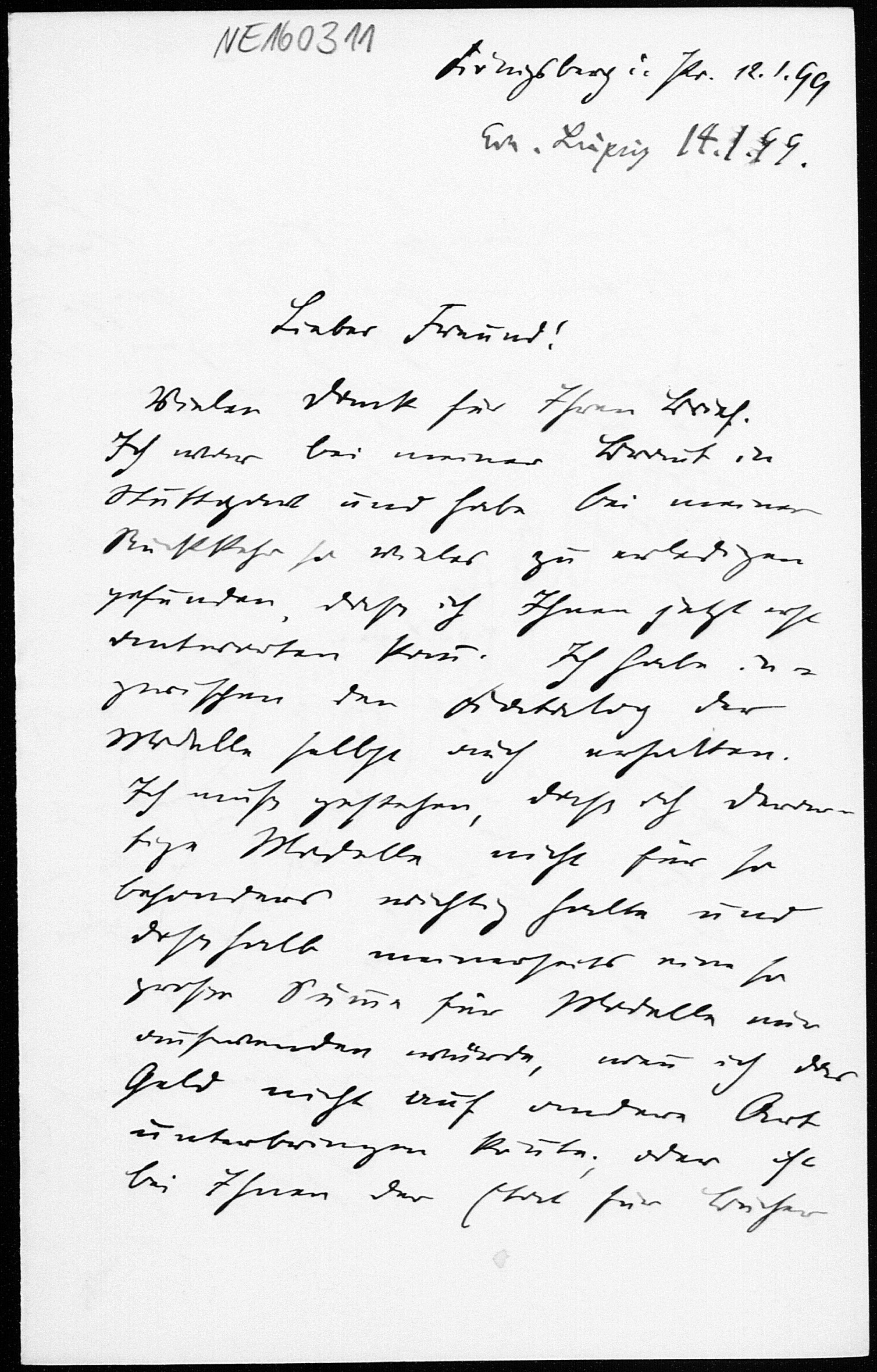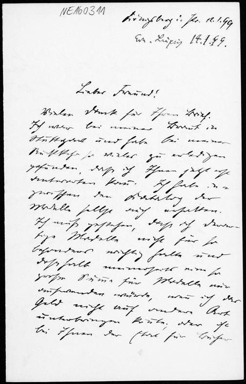 Brief von Otto Hölder an Friedrich Engel vom 12.1.1899