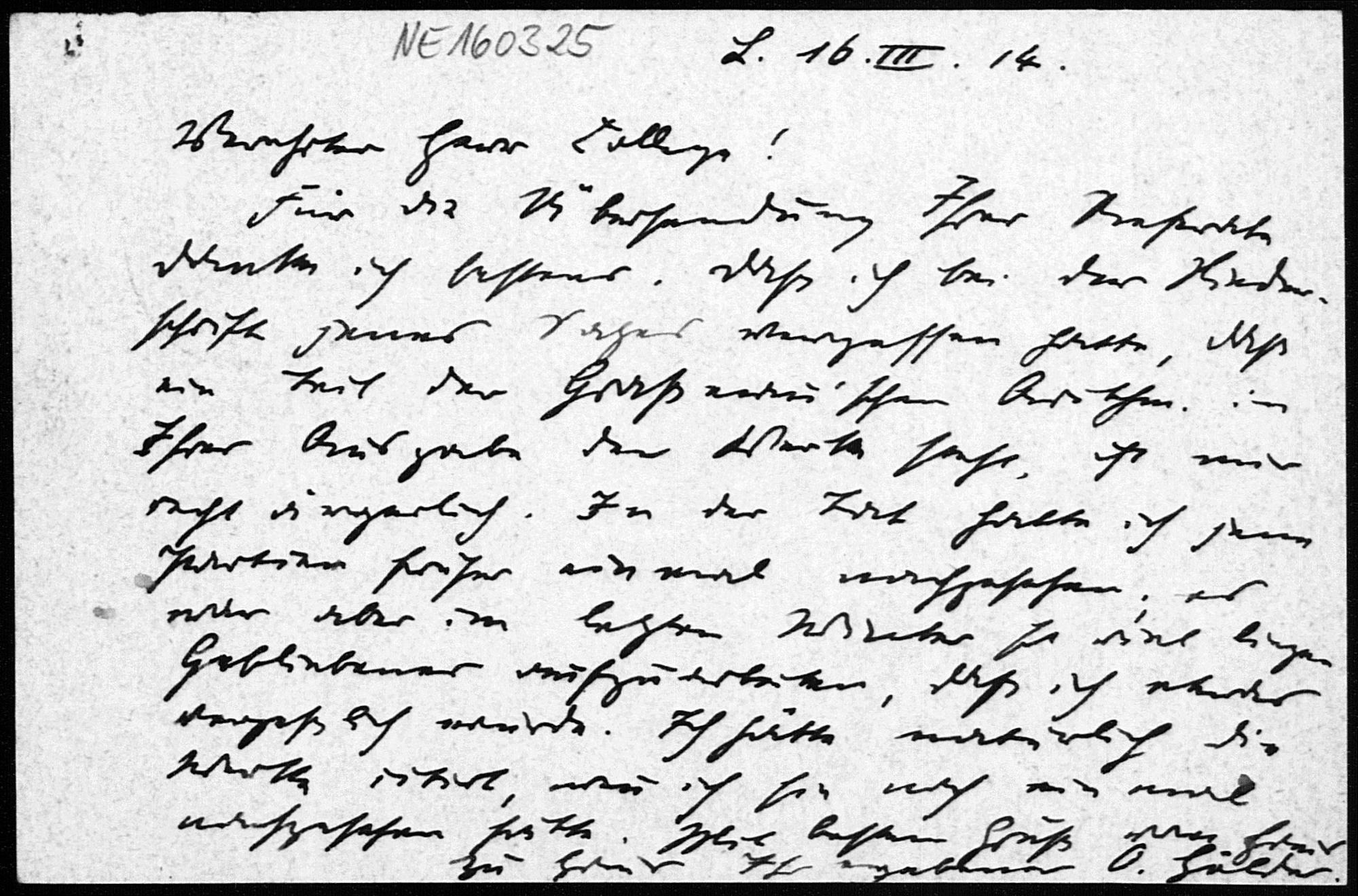 Postkarte von Otto Hölder an Friedrich Engel vom 16.3.1914