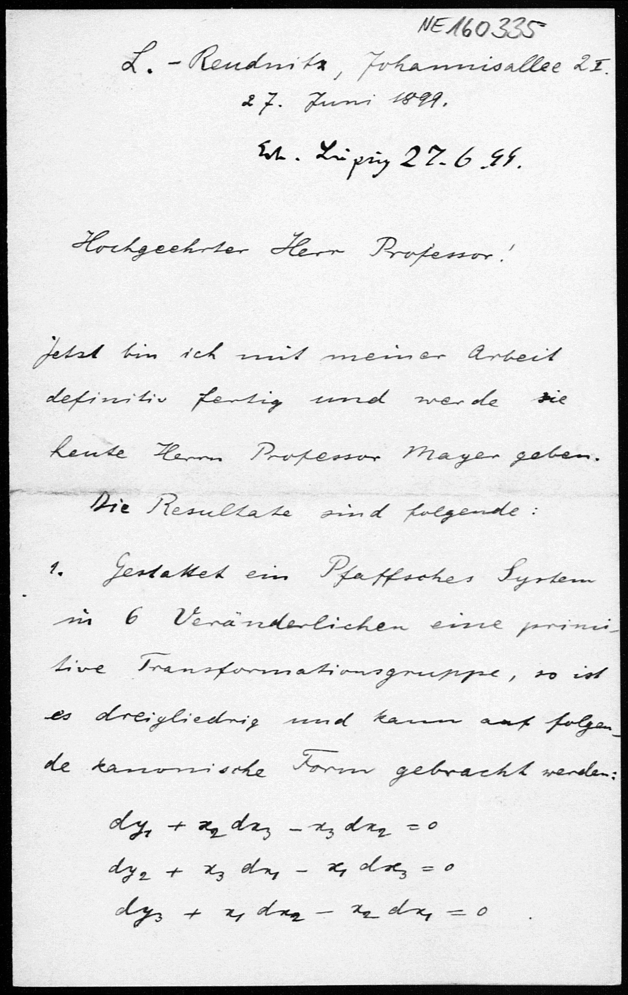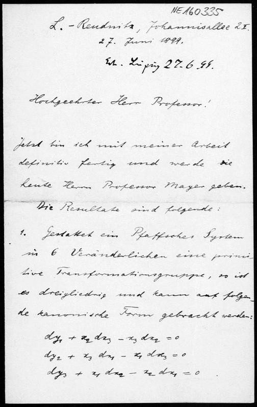 Brief von Gerhard Kowalewski an Friedrich Engel vom 27.6.1899
