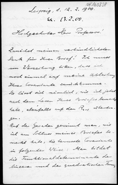 Brief von Gerhard Kowalewski an Friedrich Engel vom 12.2.1900