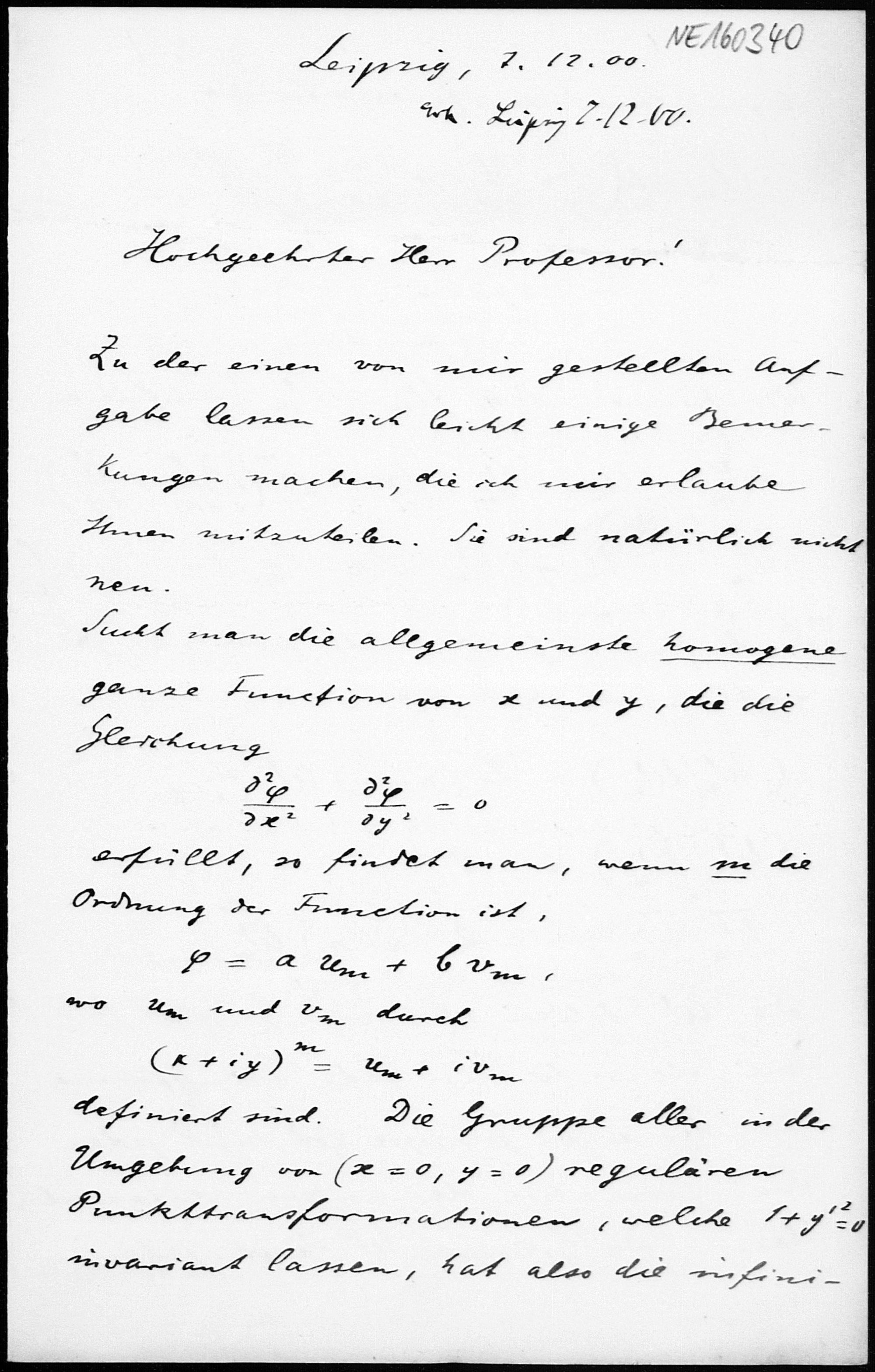 Brief von Gerhard Kowalewski an Friedrich Engel vom 7.12.1900