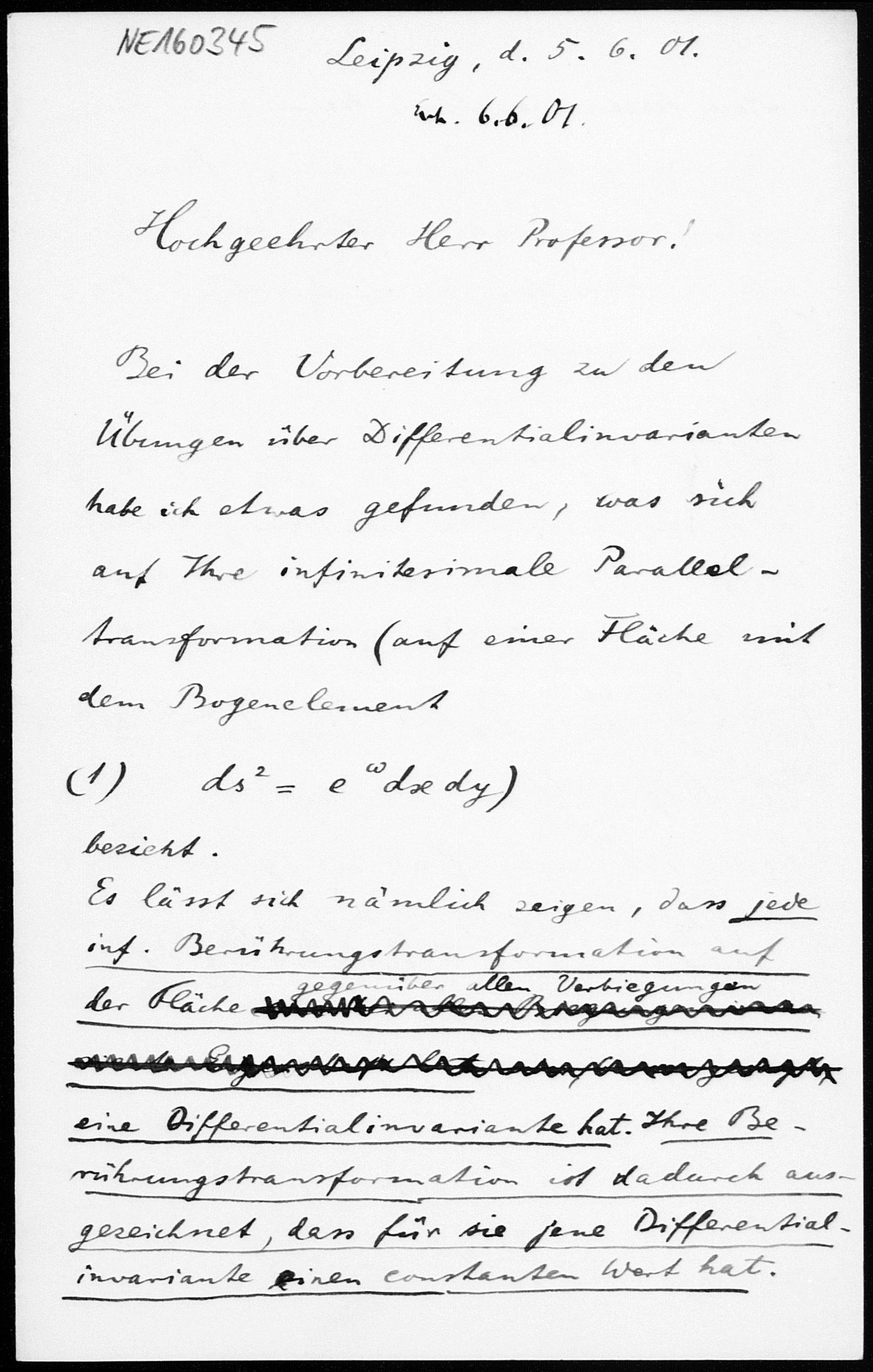 Brief von Gerhard Kowalewski an Friedrich Engel vom 5.6.1901