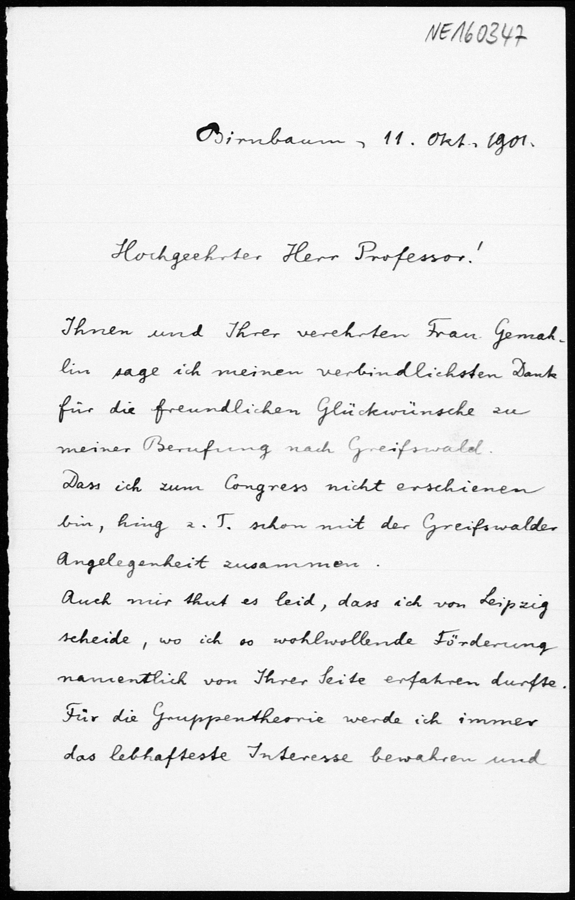 Brief von Gerhard Kowalewski an Friedrich Engel vom 11.10.1901