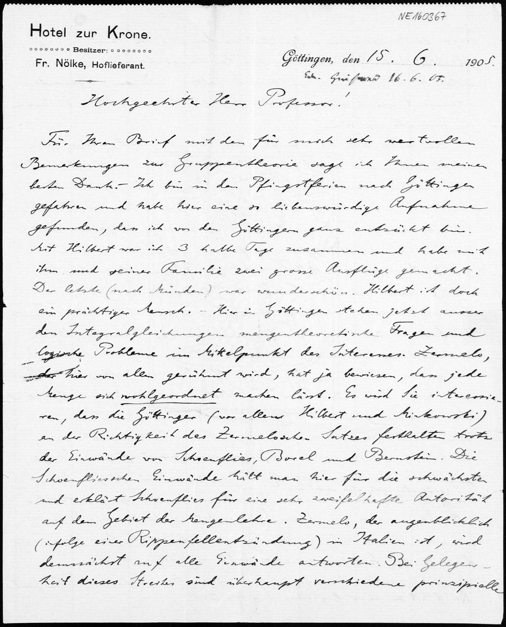 Brief von Gerhard Kowalewski an Friedrich Engel vom 15.6.1905