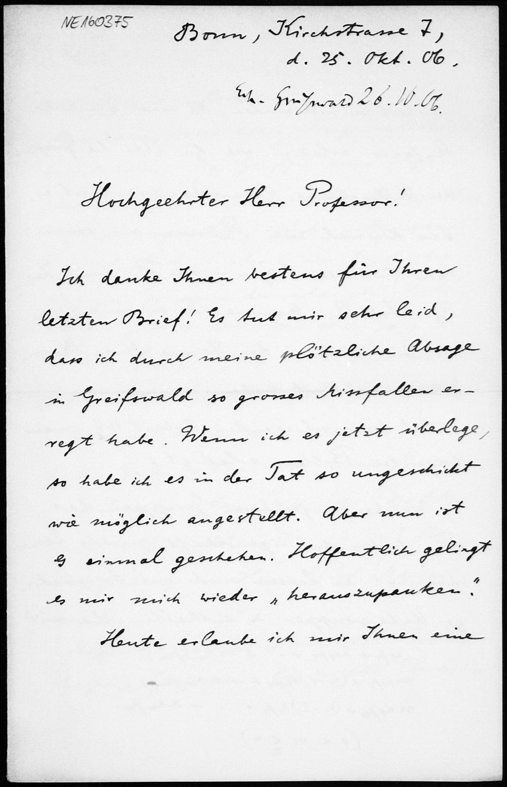 Brief von Gerhard Kowalewski an Friedrich Engel vom 25.10.1906