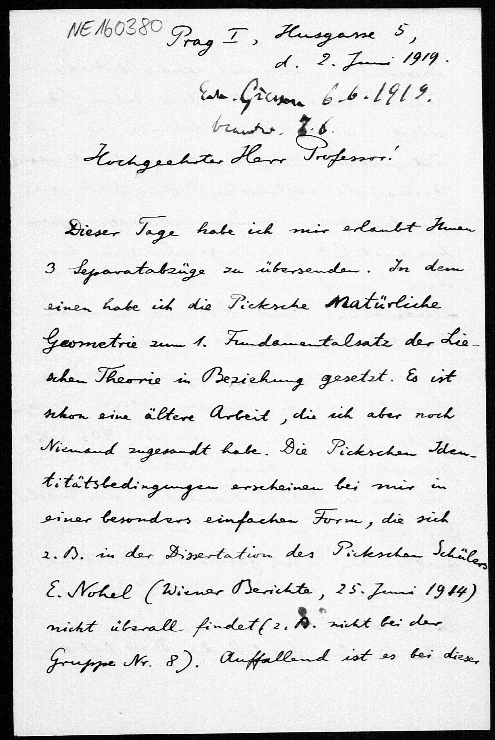 Brief von Gerhard Kowalewski an Friedrich Engel vom 2.6.1919