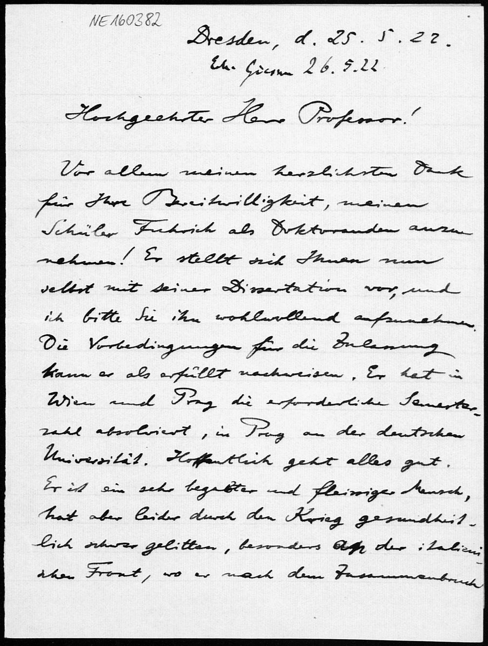 Brief von Gerhard Kowalewski an Friedrich Engel vom 25.5.1922