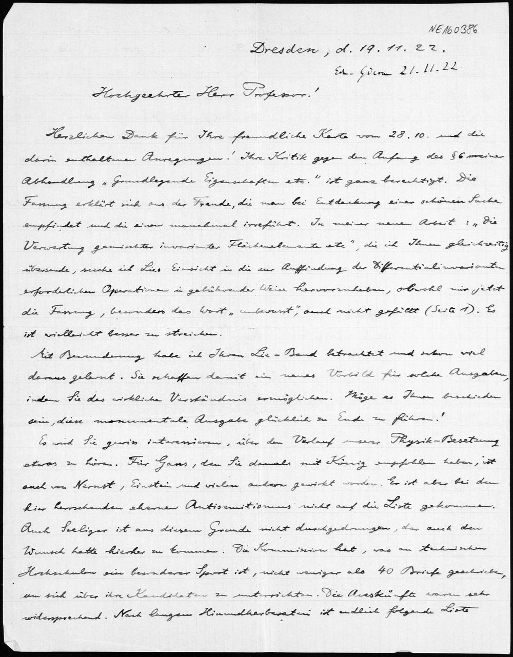 Brief von Gerhard Kowalewski an Friedrich Engel vom 19.11.1922