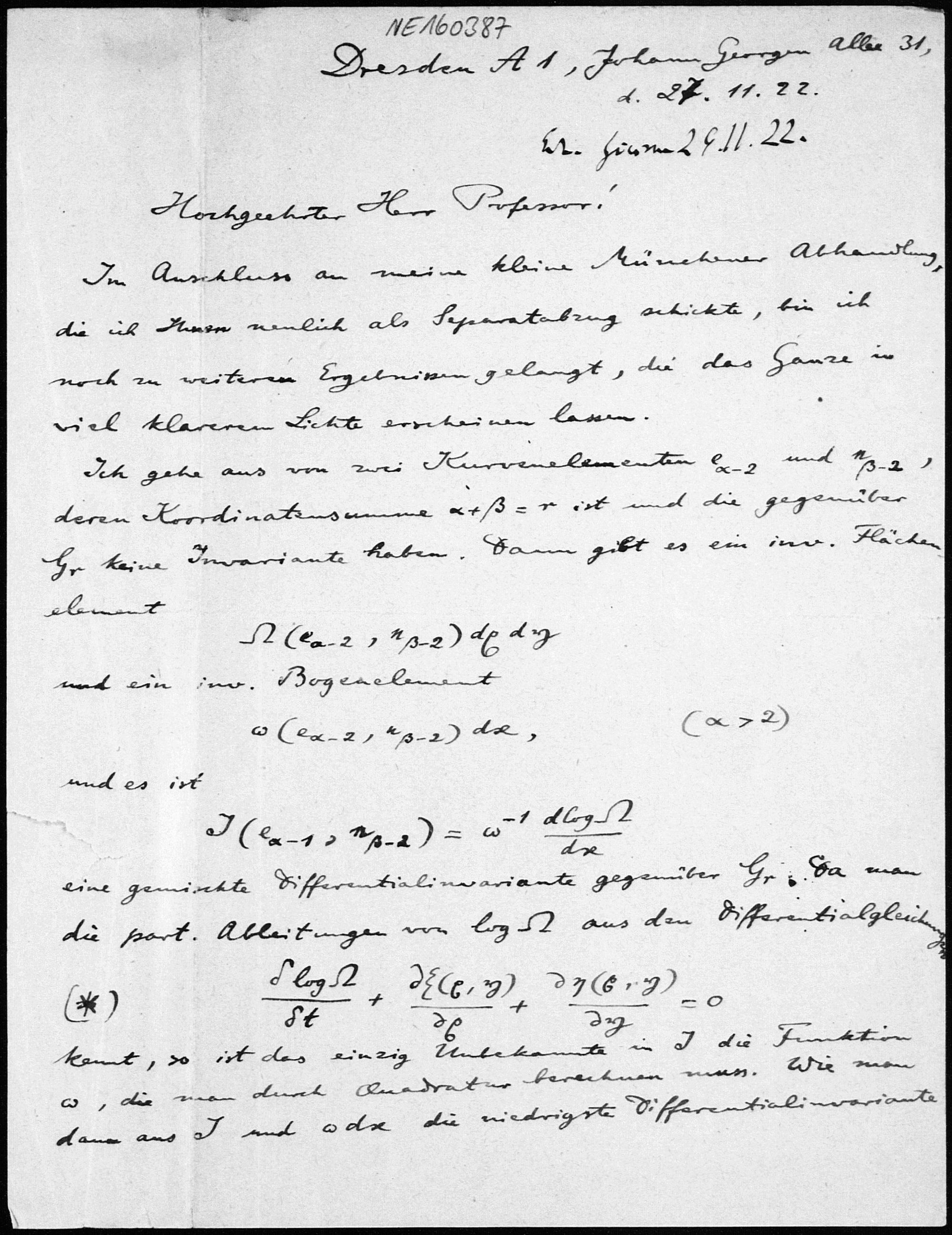 Brief von Gerhard Kowalewski an Friedrich Engel vom 27.11.1922