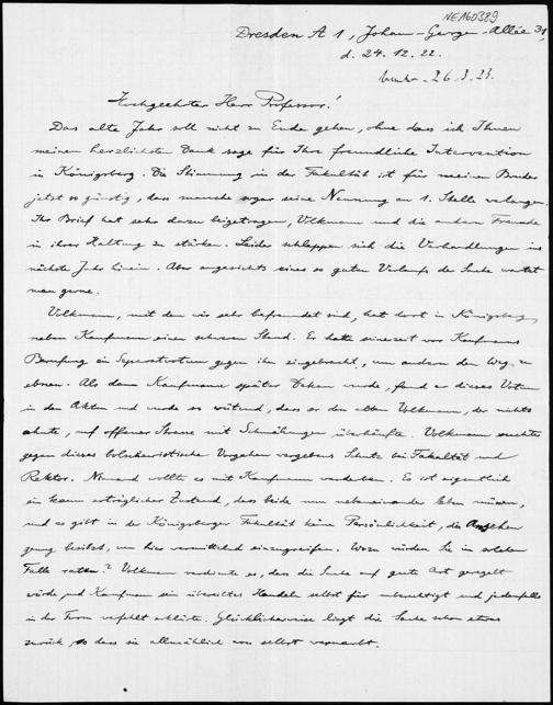 Brief von Gerhard Kowalewski an Friedrich Engel vom 24.12.1922