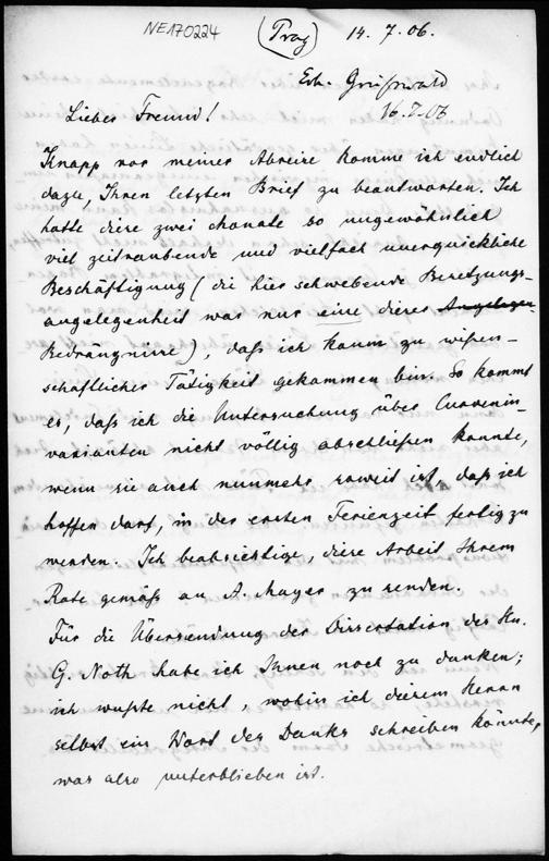 Brief von Georg Pick an Friedrich Engel vom 14.7.1906