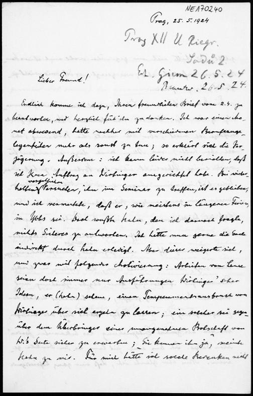 Brief von Georg Pick an Friedrich Engel vom 25.5.1924