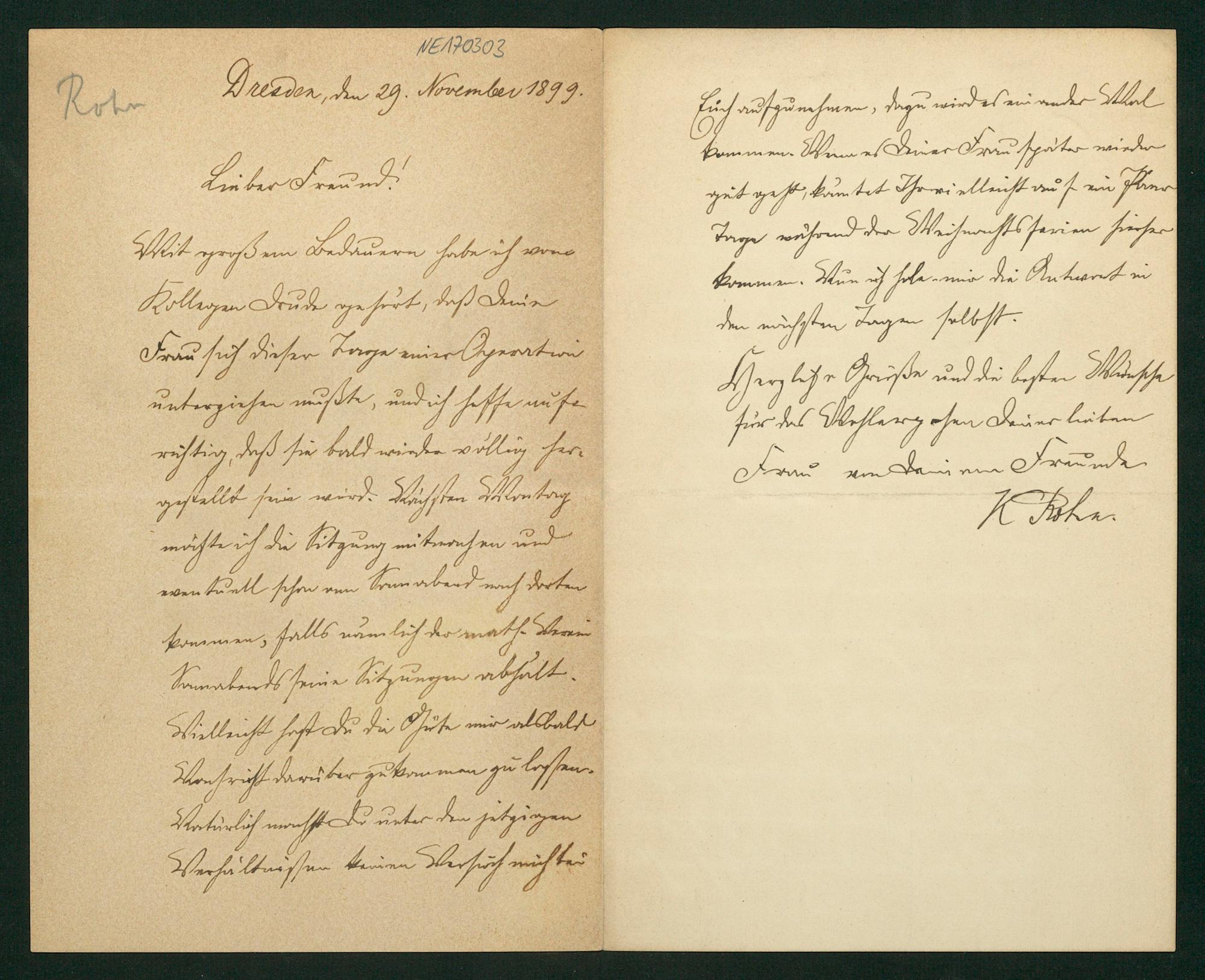 Brief von Karl Rohn an Friedrich Engel vom 29.11.1899