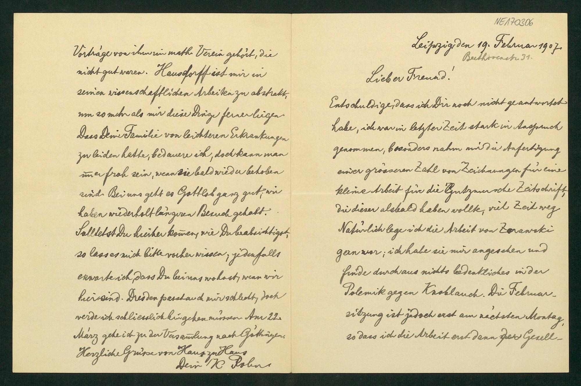 Brief von Karl Rohn an Friedrich Engel vom 19.2.1907