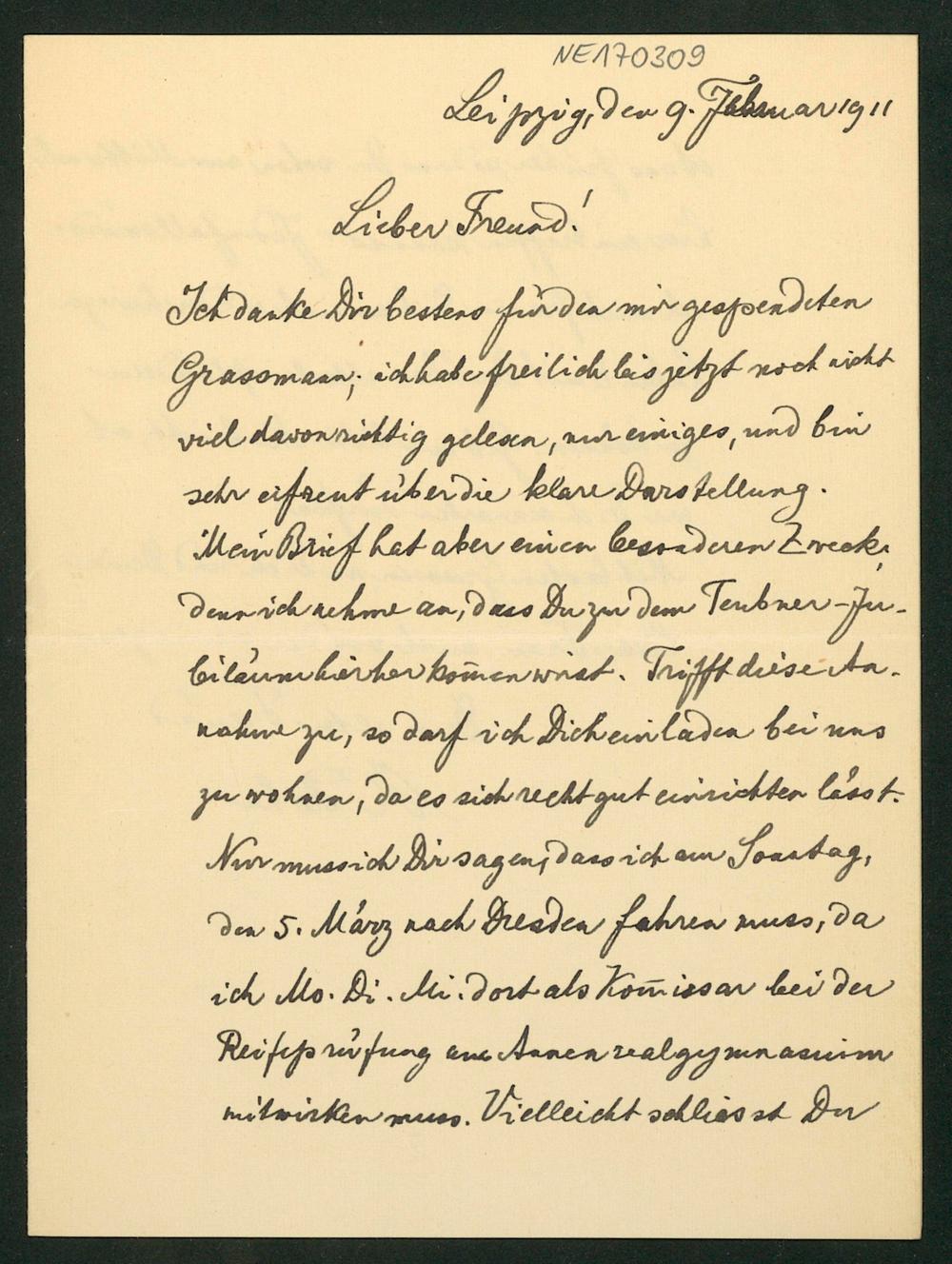 Brief von Karl Rohn an Friedrich Engel vom 9.2.1911