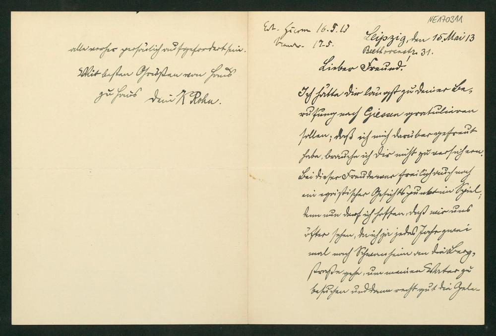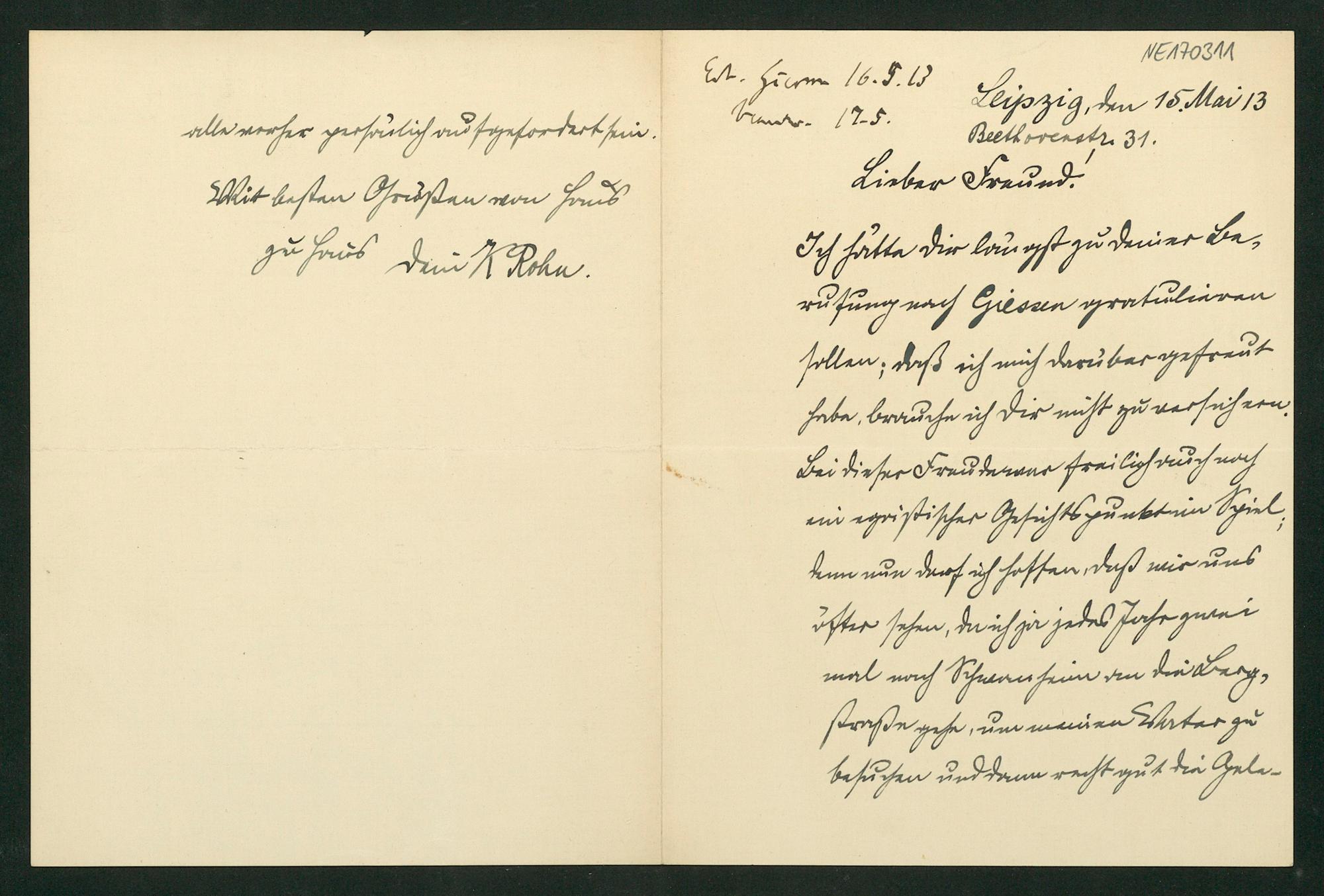 Brief von Karl Rohn an Friedrich Engel vom 15.5.1913