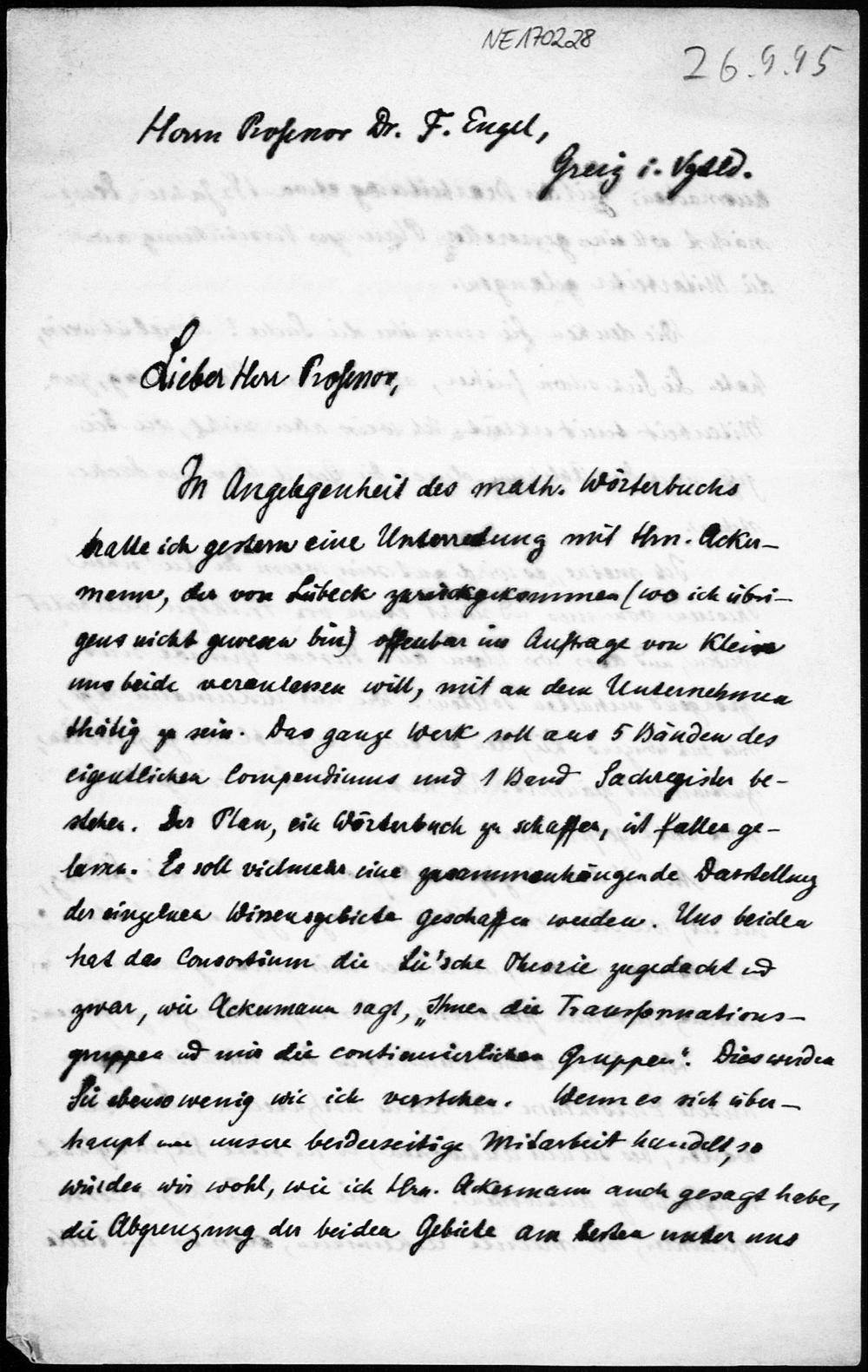 Brief von Georg Scheffers an Friedrich Engel vom 26.9.1895