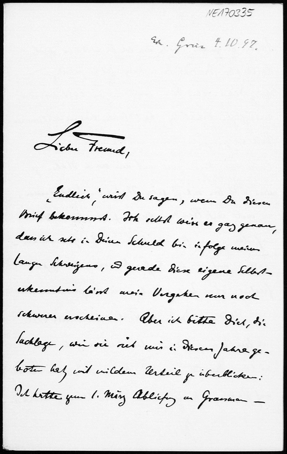 Brief von Georg Scheffers an Friedrich Engel vom 1.10.1897