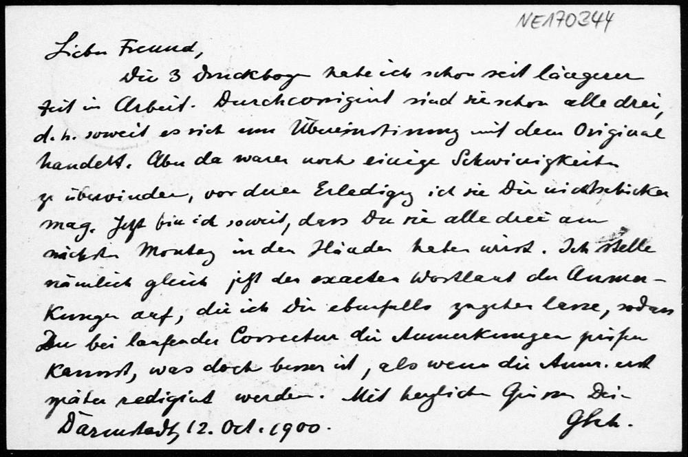 Postkarte von Georg Scheffers an Friedrich Engel vom 12.10.1900
