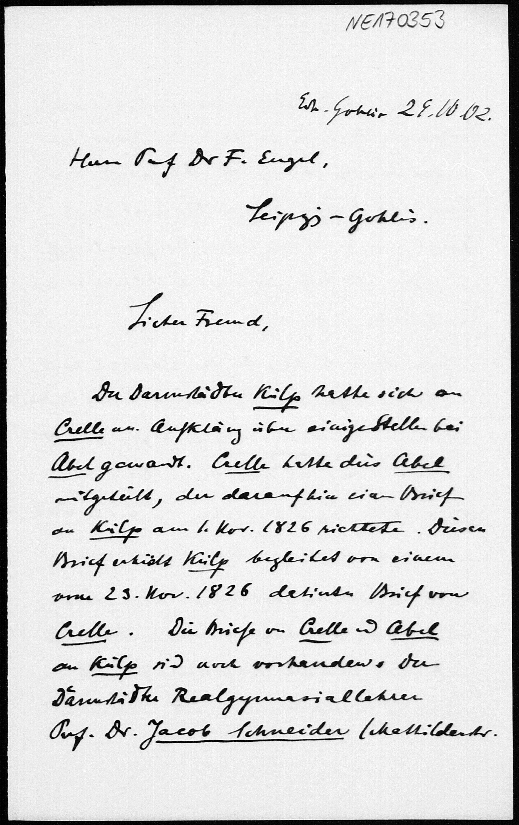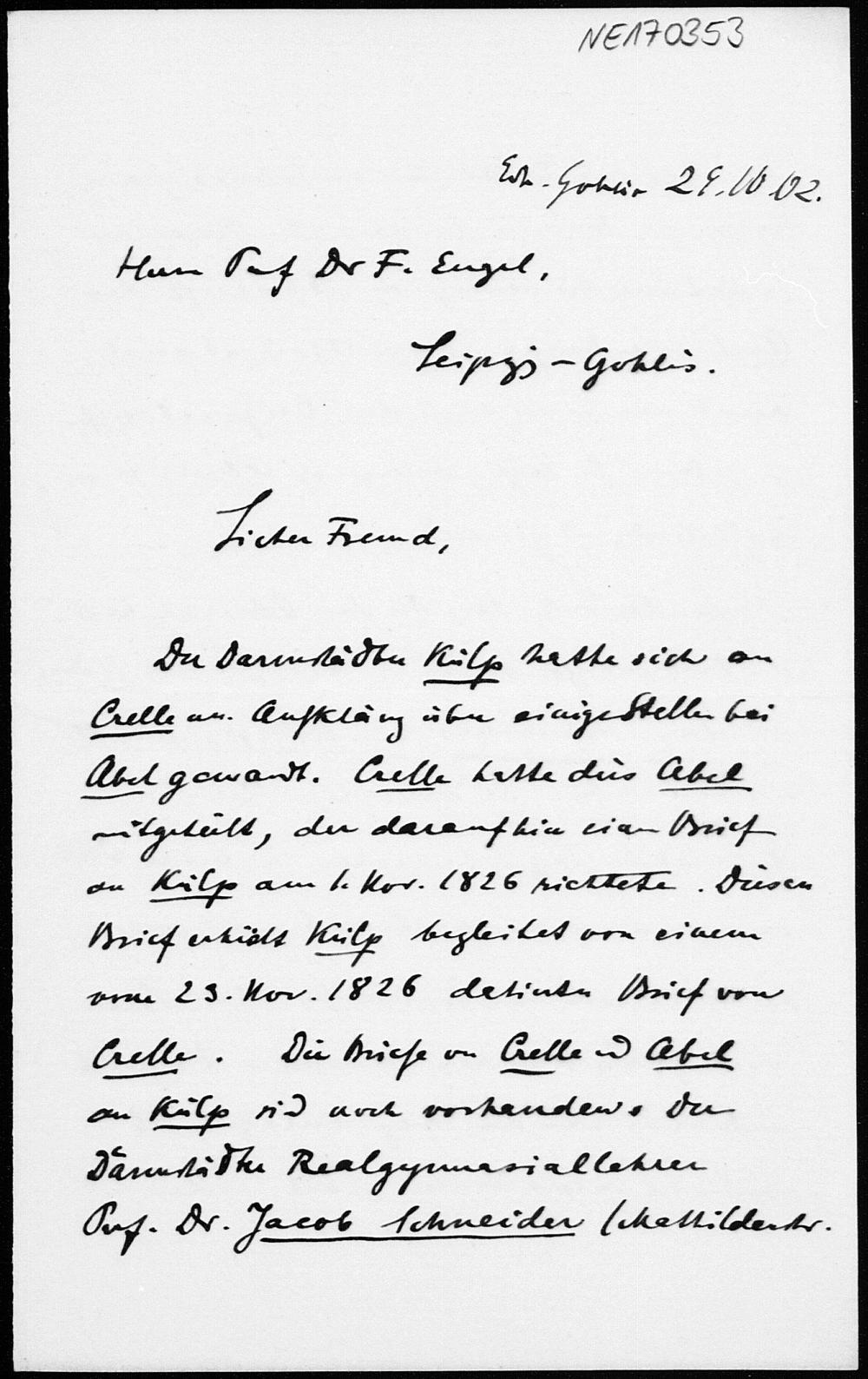 Brief von Georg Scheffers an Friedrich Engel vom 28.10.1902