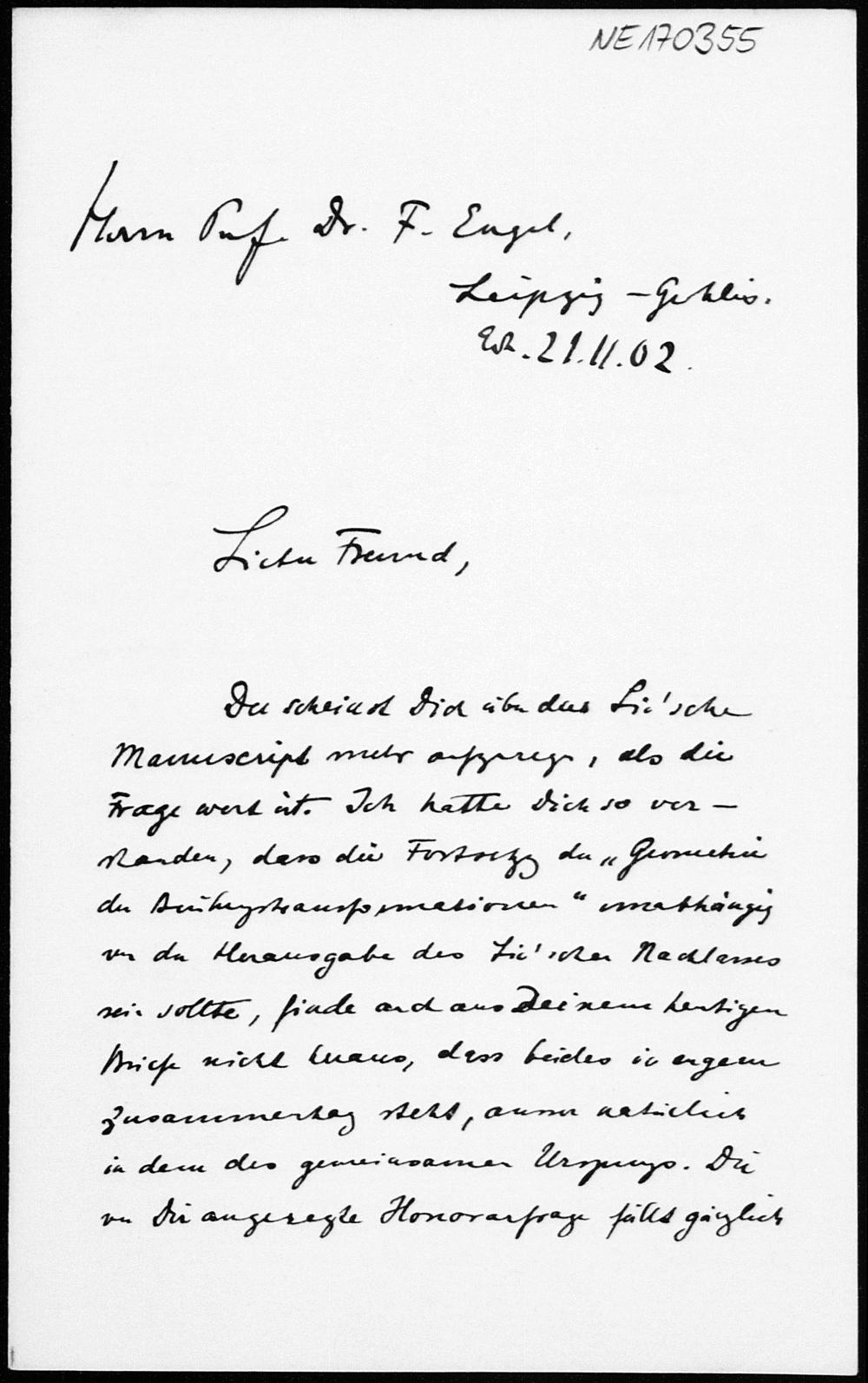 Brief von Georg Scheffers an Friedrich Engel vom 20.11.1902