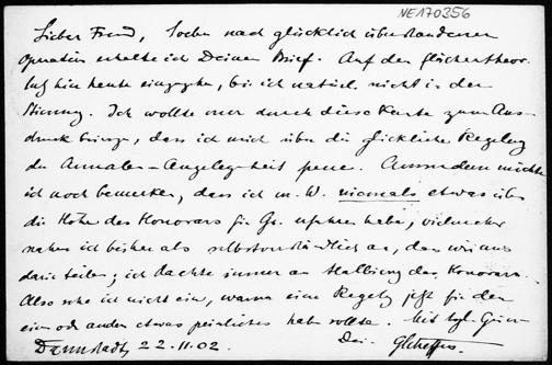 Postkarte von Georg Scheffers an Friedrich Engel vom 22.11.1902