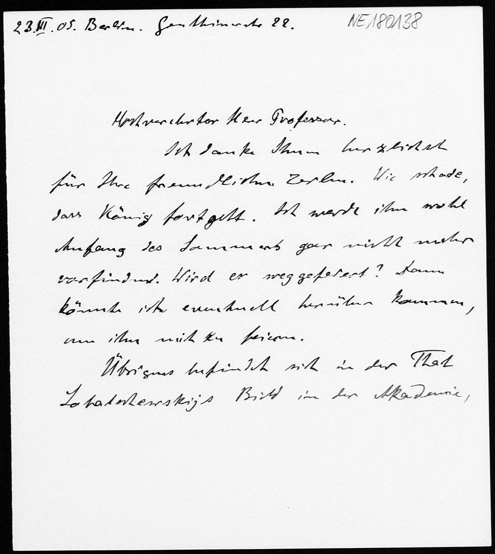 Brief von Theodor Vahlen an Friedrich Engel 23.3.1905