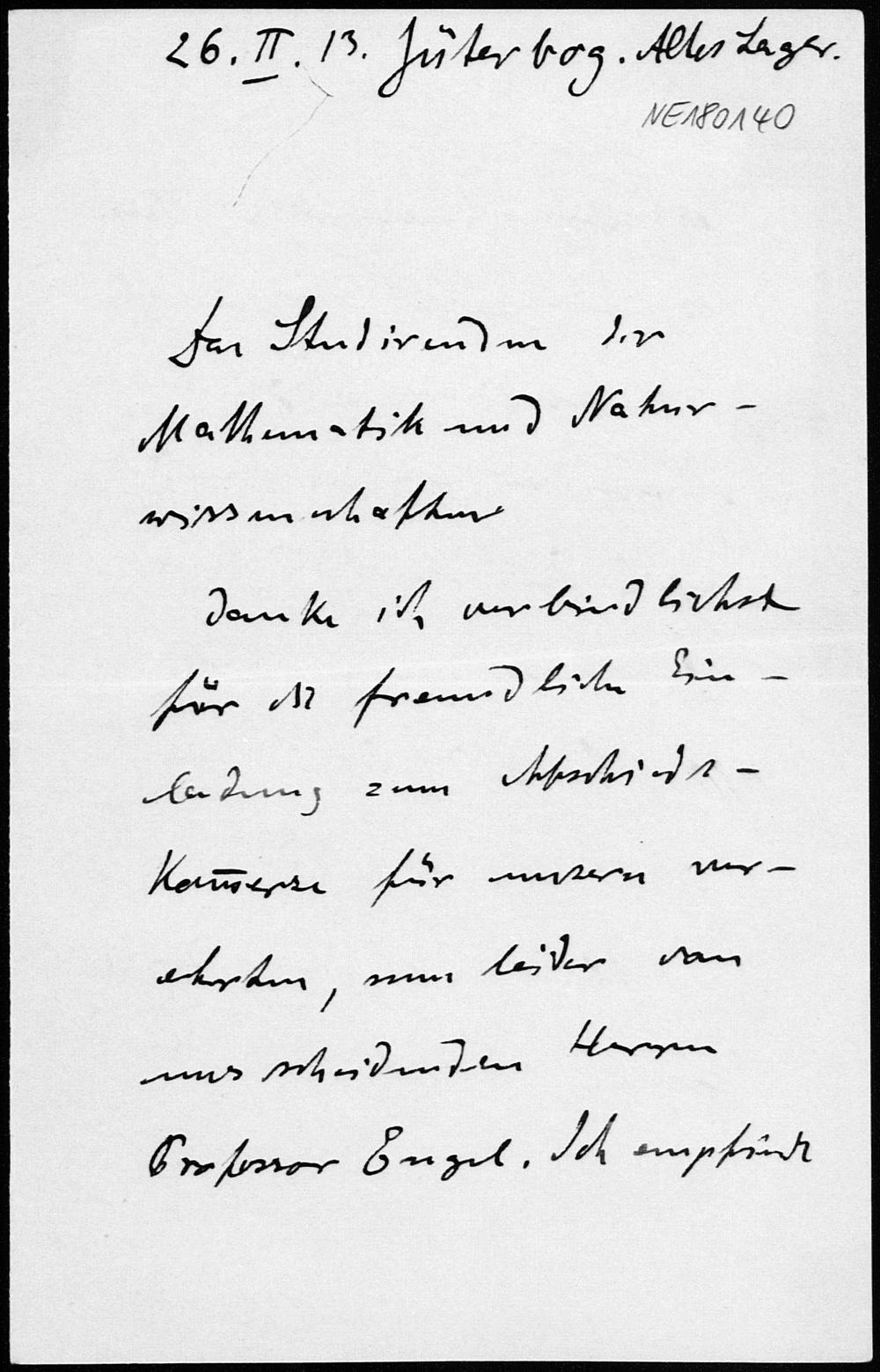 Brief von Theodor Vahlen an Friedrich Engel 26.3.1913